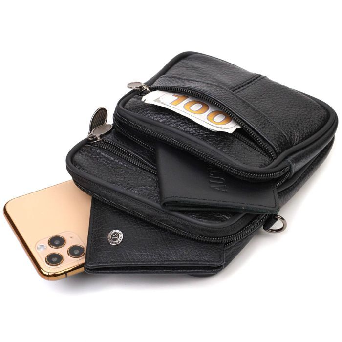 Сумка Vintage На пояс з натуральної шкіри Чорна (21483)
