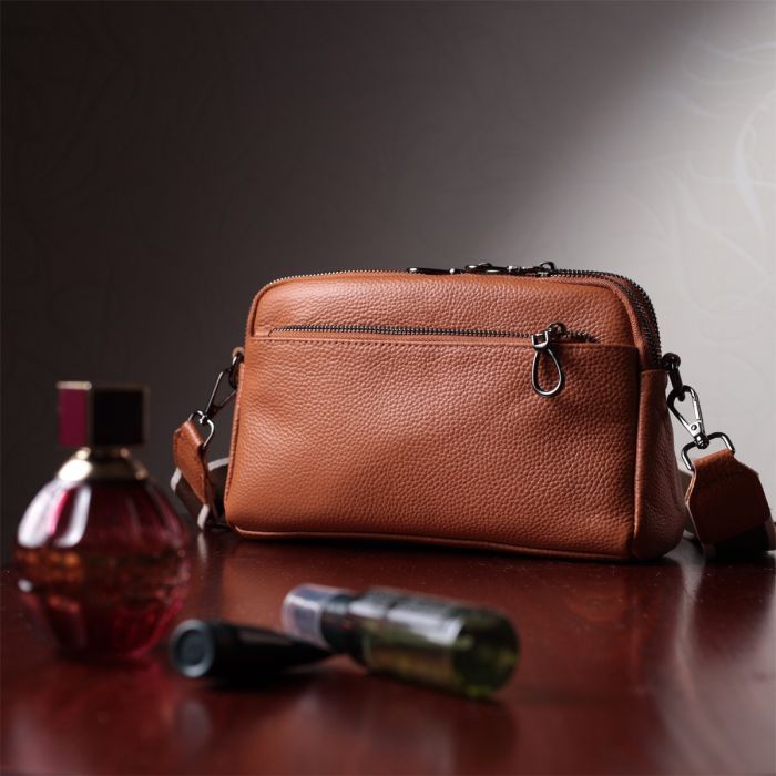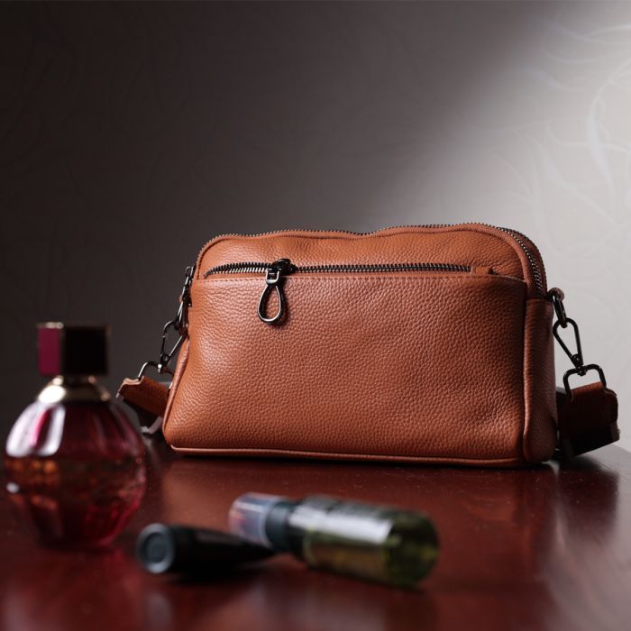 Сумка Vintage Містка Жіноча з кишенями з натуральної шкіри Коричнева (22601)