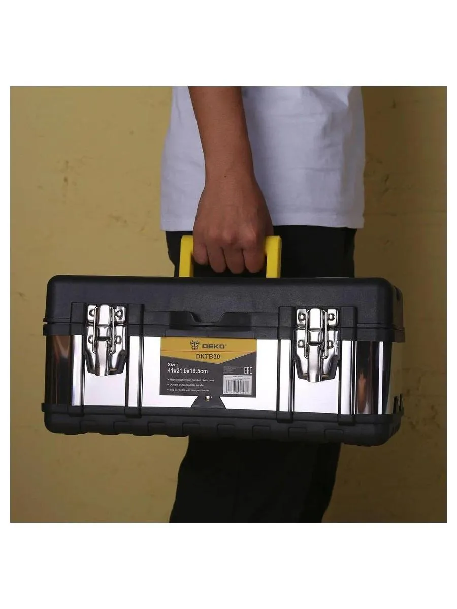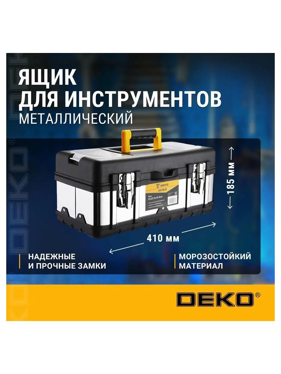 Описание товара Ящик для инструментов пластиковый с металлическими вставками Deko RDKTB30 (41х21.5х18.5см)