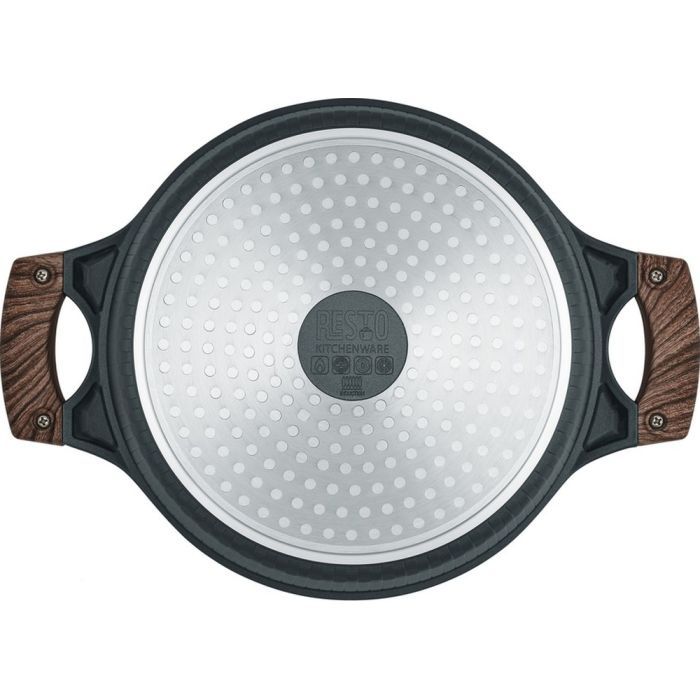 • Особливості отвір на кришці для виходу пара , міцне багатошарове дно , антипригарне покриття , дві ручки