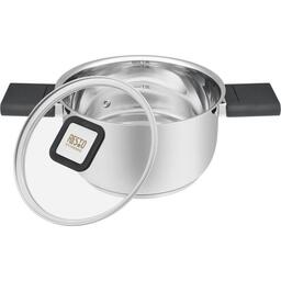 • Особливості мірна шкала , отвір на кришці для виходу пара , міцне багатошарове дно , дві ручки