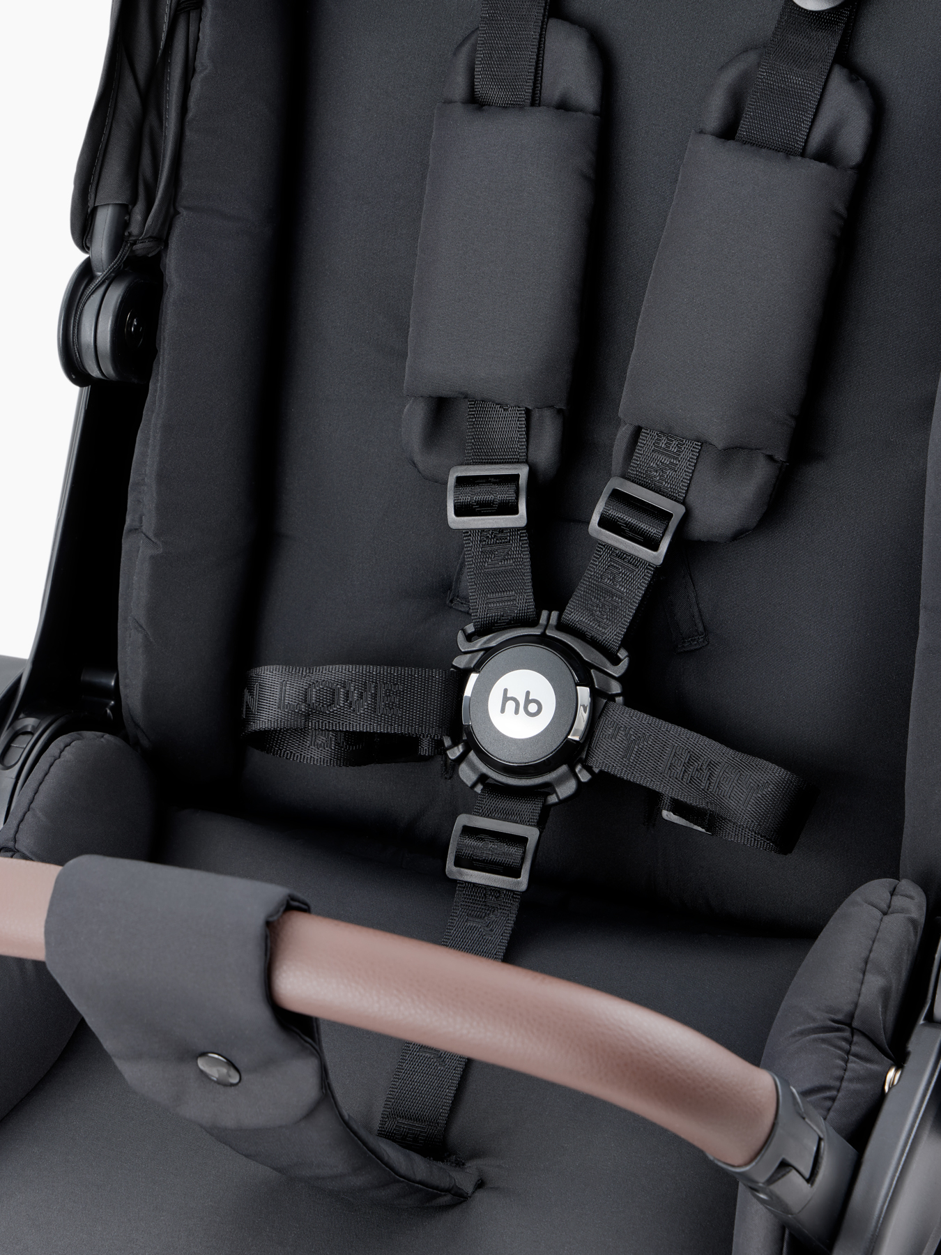 • Безопасность: поворотный съемный бампер, магнитная пряжка на пятиточечных ремнях безопасности с мягкими накладками, стояночный тормоз блокирует оба задних колеса