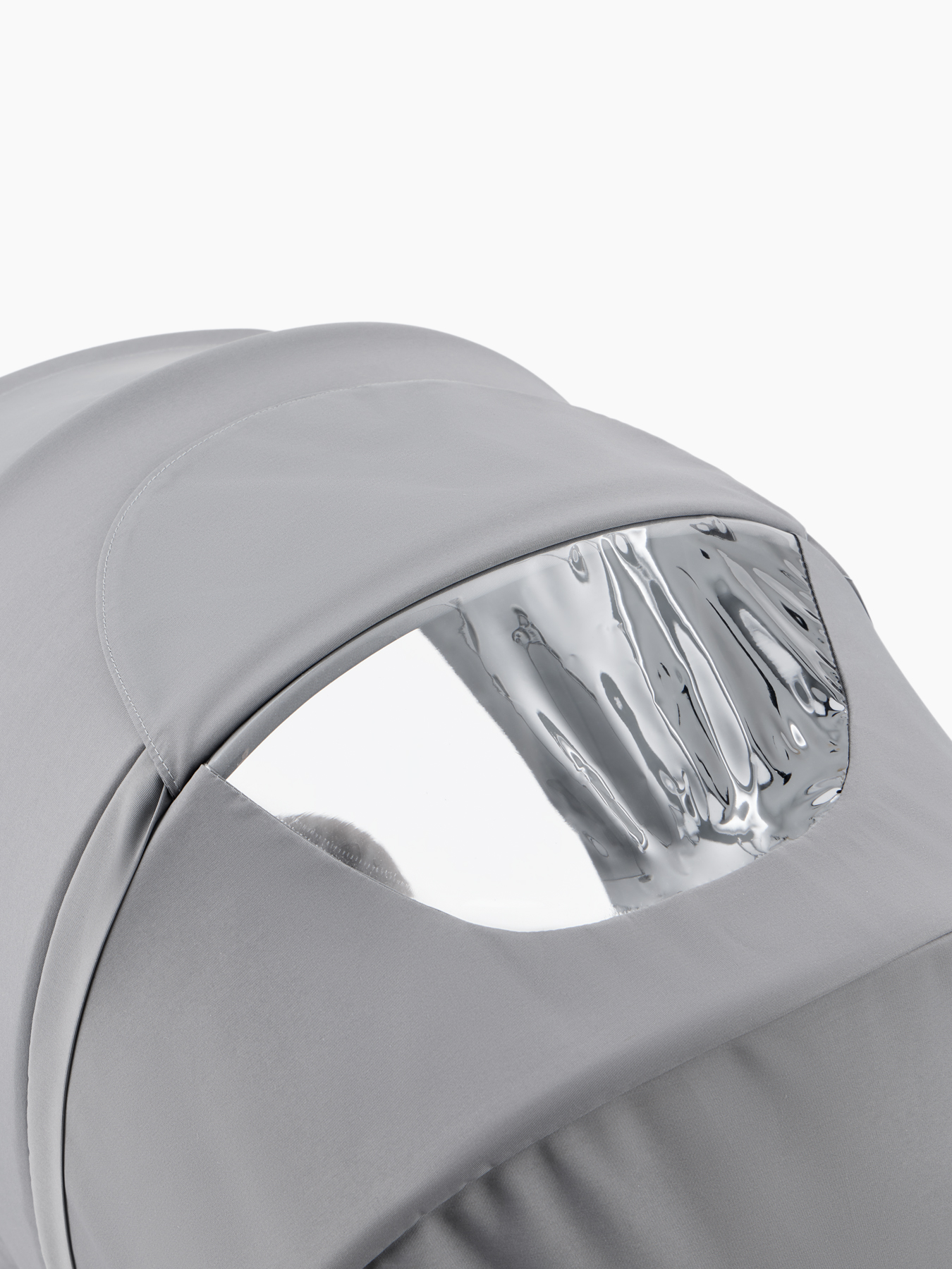 • Люлька с защитой от непогоды: широко раскрывающийся капюшон, чехол на ножки