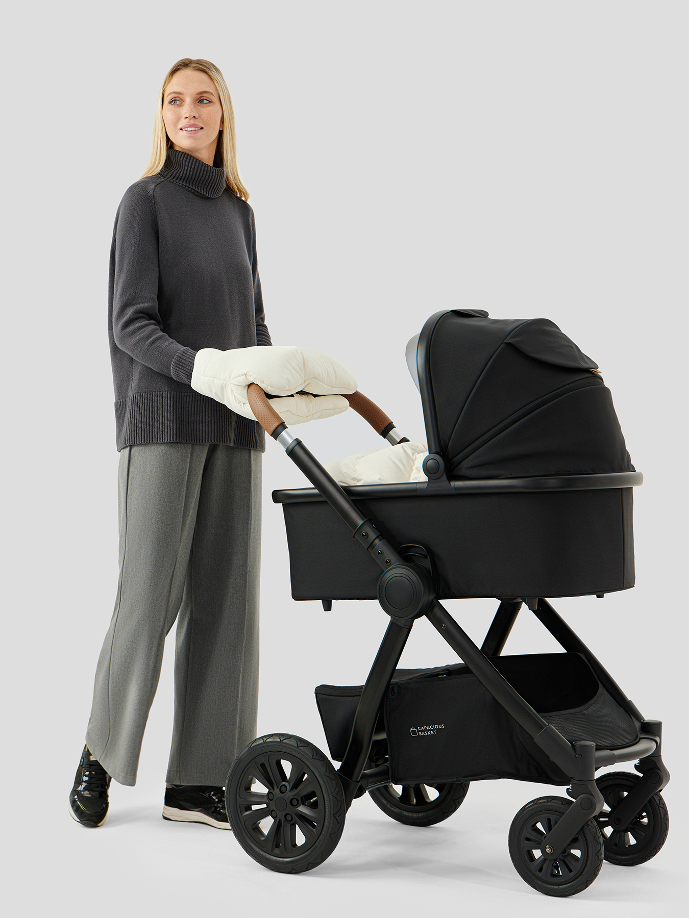 • Коляска 2в1 (2 блока): просторная люлька и комфортный прогулочный блок.