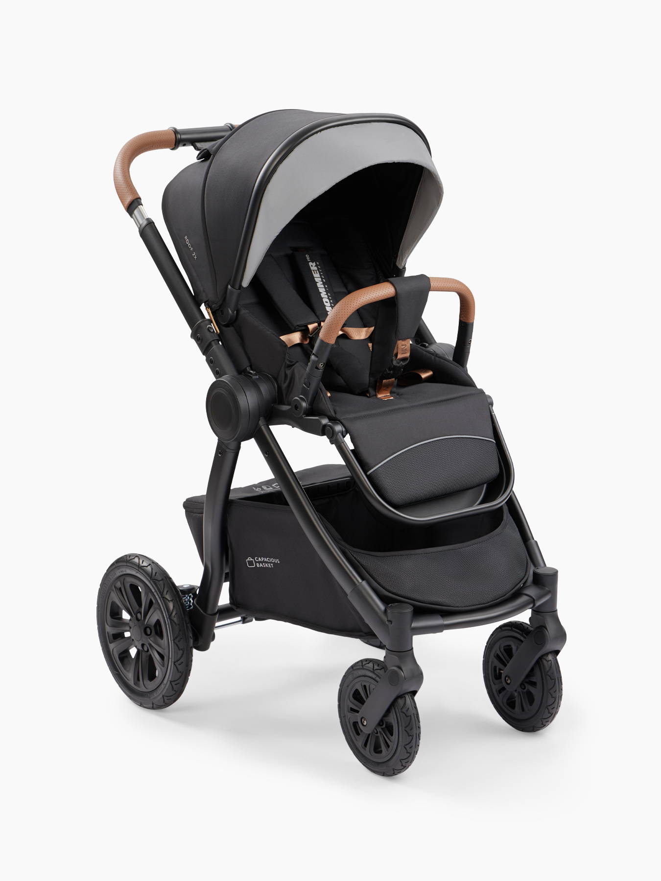 Гулять с MOMMER PRO удобно и маме, и папе – телескопическая ручка настраивается на нужную длину. Амортизация на задних и передних колёсах обеспечит комфорт даже на бездорожье. Надёжные задние колеса с резиновой покрышкой и вспененным EVA-наполнением не надо подкачивать. Большая корзина вместит покупки и всё необходимое для прогулок.