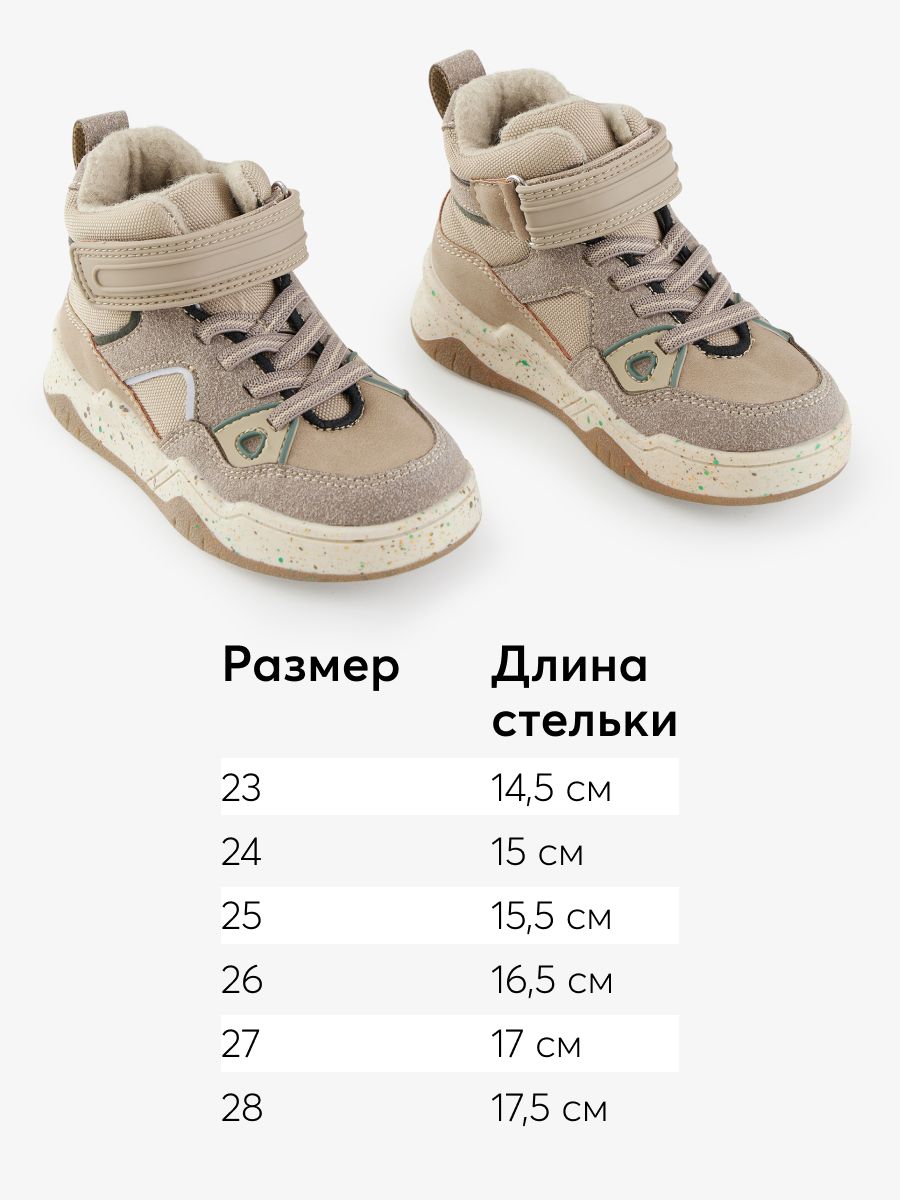 Ботинки идеальны для прогулок осенью и весной в любую погоду. Высокая подошва из термопластичной резины не промокает, не скользит: можно смело гулять в слякоть и небольшой дождь. Верх из искусственной замши и влагостойкого материала комфортен в носке, выглядит стильно и позволяет легко сочетать вещь в гардеробе. Резиновая застежка на липучке износостойкая и надёжная. Внутри – теплая байка, которая не дает ножкам вспотеть или замерзнуть. Ботинки идеально подойдут активным девочкам и мальчикам.