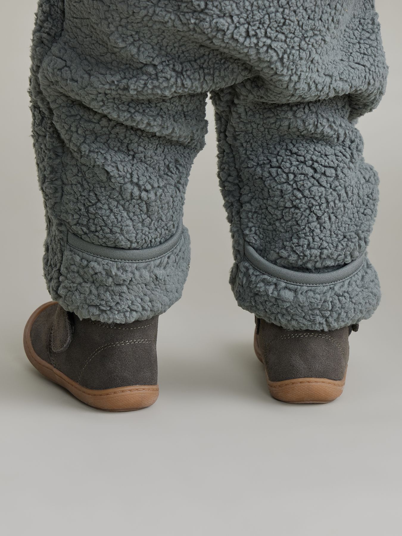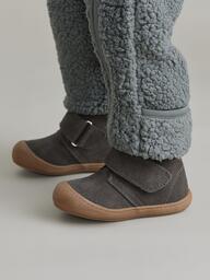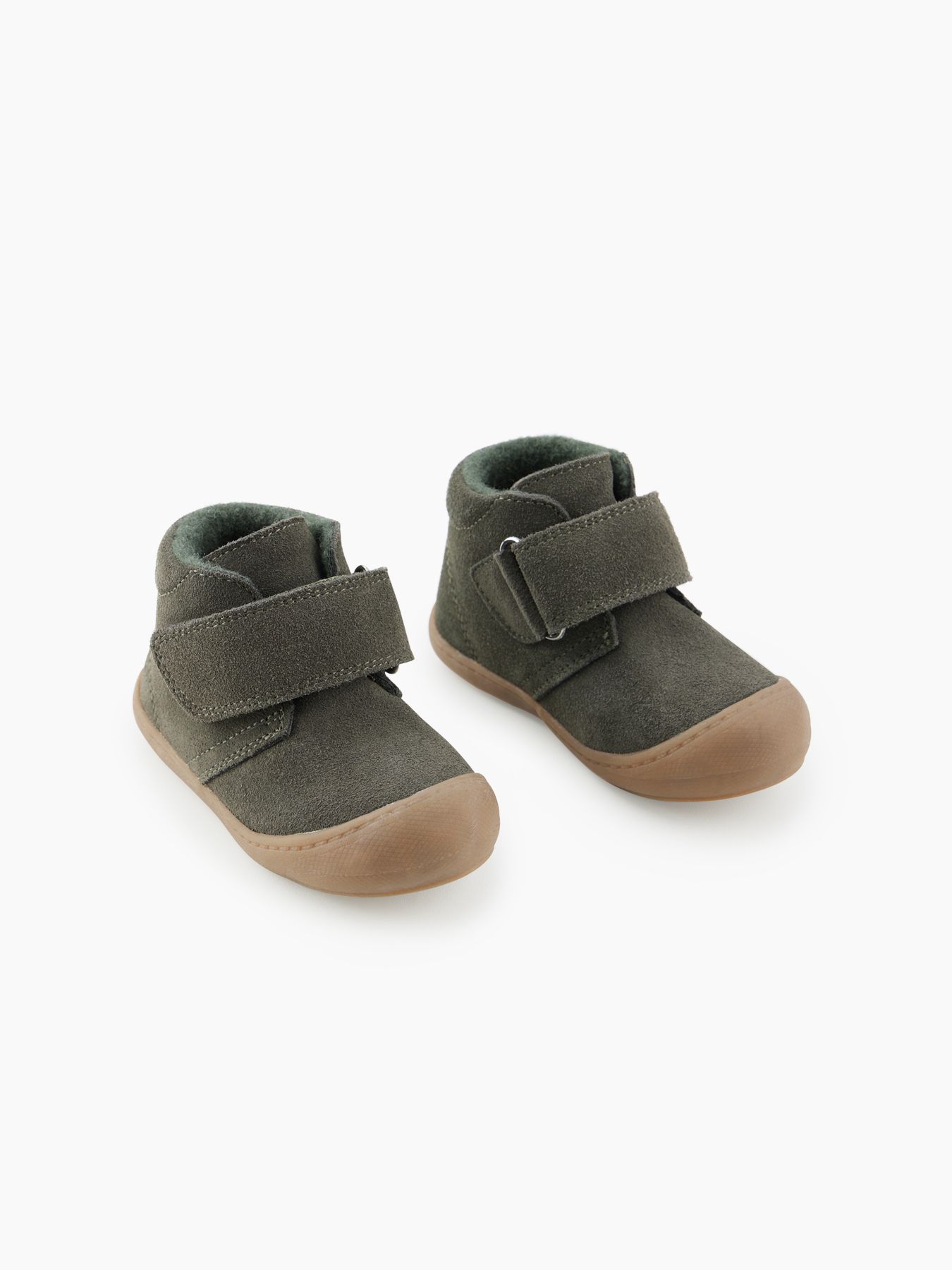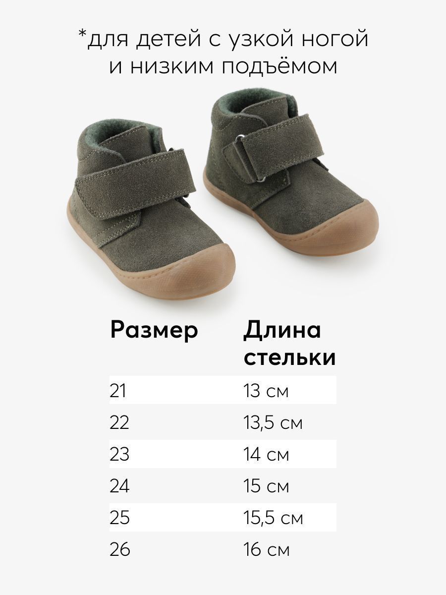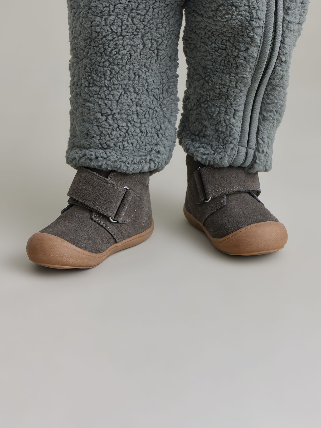 Замшевые ботиночки разработаны специально для самых маленьких. Натуральный материал хорошо облегает ногу, не сковывает движения, не деформируется. Внутри байковая шерстяная подкладка, которая сохраняет тепло, при этом не давая ноге вспотеть. Подошва из термопластичной резины очень легкая и не скользит, чтобы малыш уверенно совершал свои первые шаги. Носок дополнительно укреплен, защищает ребенка от травм и промокания, а обувь от истирания. Липучки позволят быстро надевать и снимать обувь, не причиняя дискомфорт. Ботинки легко чистить. Обувь выполнена в классических цветах и идеально сочетается с демисезонной одеждой.