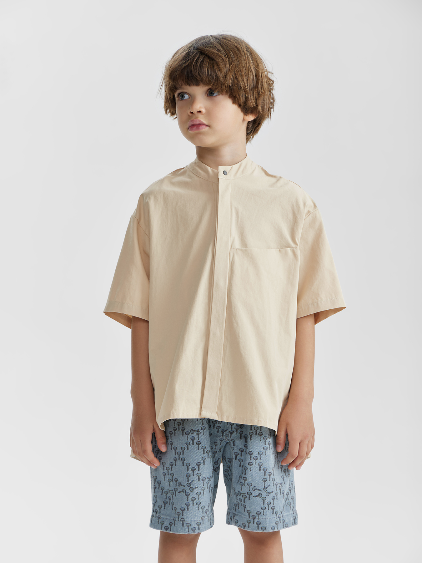Стильная рубашка с минималистичным дизайном подойдет мальчикам и девочкам. Модель выполнена из натурального хлопка, что обеспечивает комфорт при носке и хорошую воздухопроницаемость. Удлиненная спинка выглядит актуально и необычно. Крой оставляет полную свободу движений. Рубашка идеальна для создания базовых и необычных комплектов.