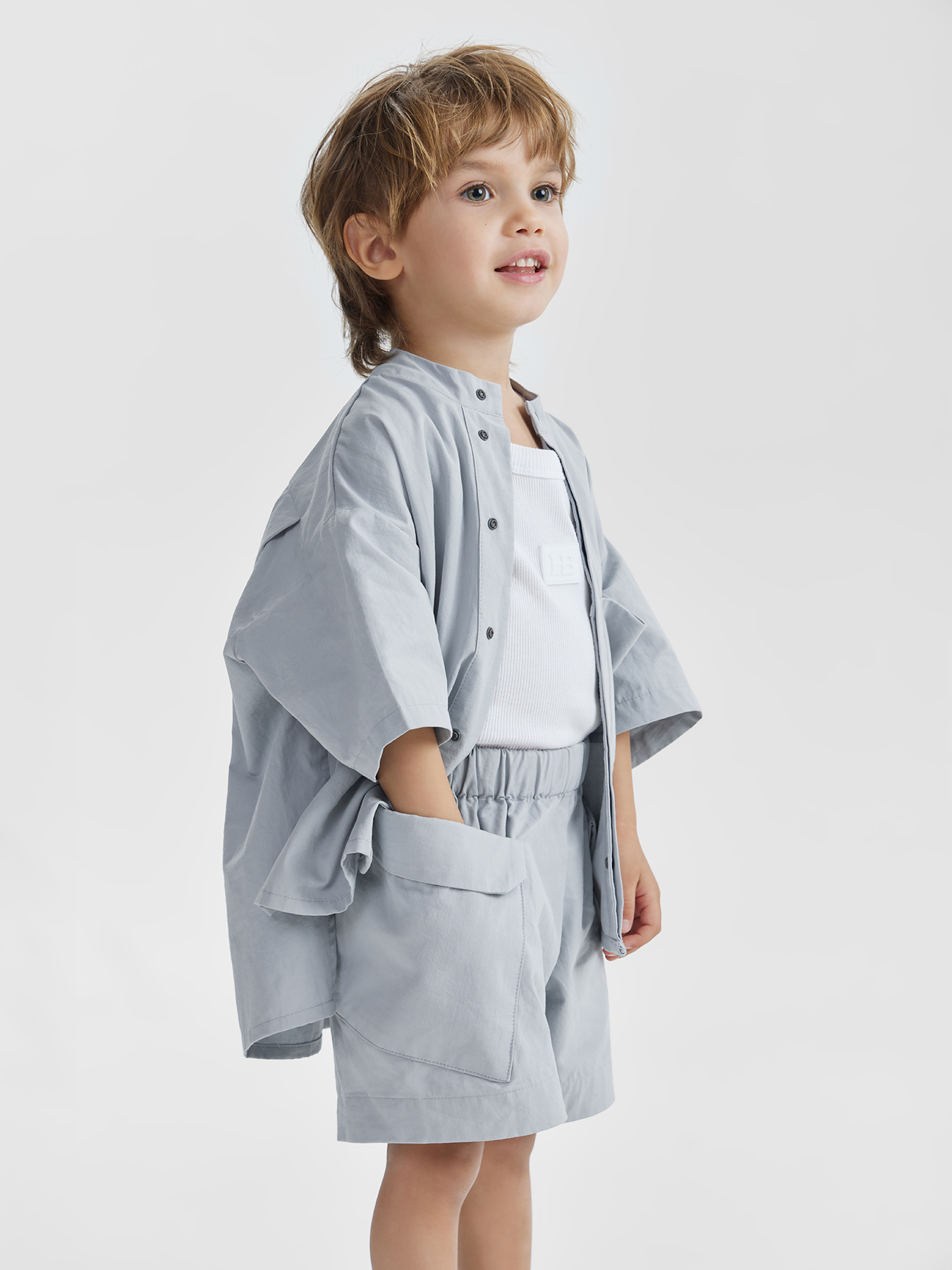 Стильные хлопковые шорты легко сочетать в образах девочек и мальчиков. Сшиты из 100% хлопка. Натуральный материал комфортен в жару. Благодаря резинке на поясе модель подойдет детям с разным объемом талии, завязки помогают дополнительно зафиксировать изделие. Накладные карманы отсылают к стилю «сафари», а ещё в них удобно складывать важные мелочи. Классические цвета и дизайн подходят для создания комплектов с одеждой разных стилей.