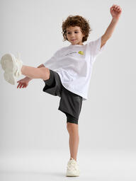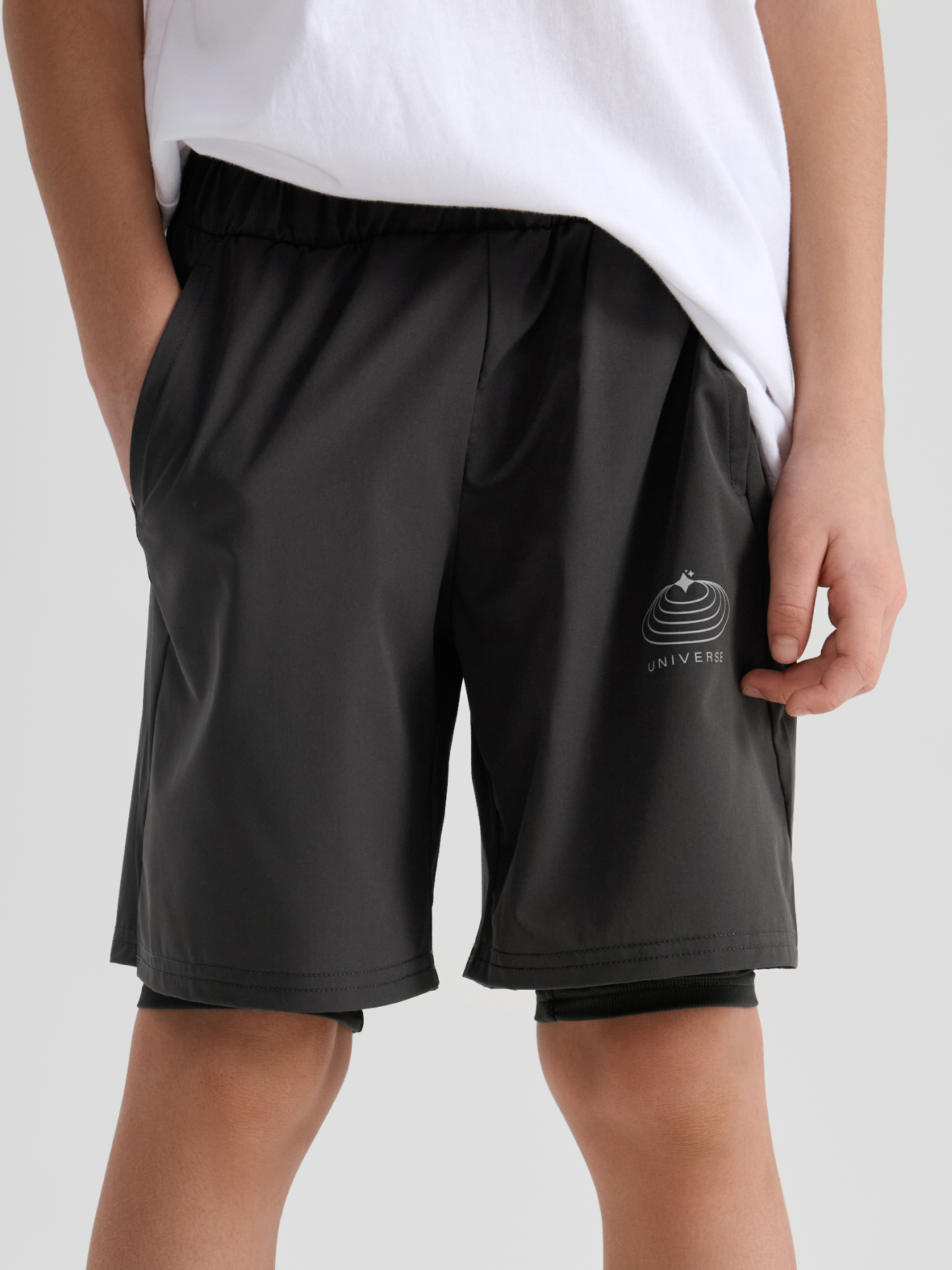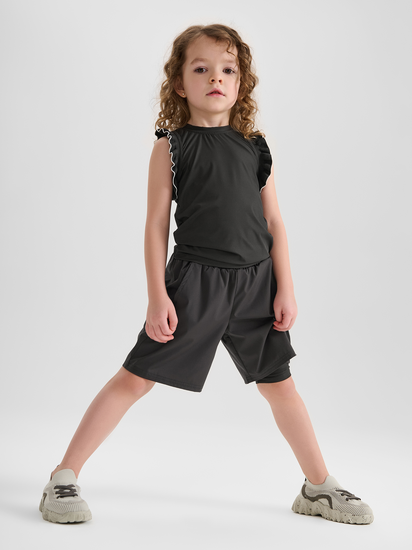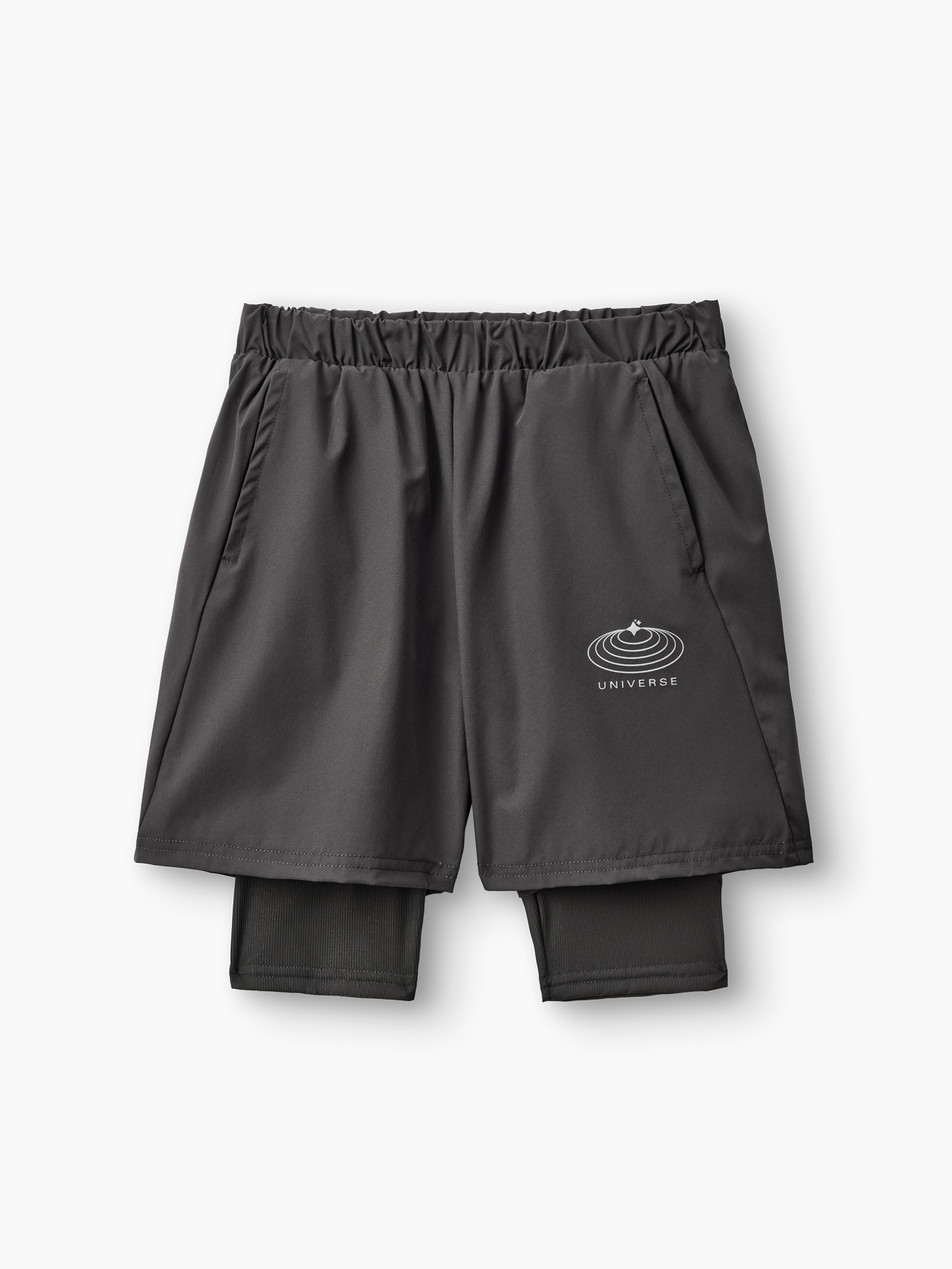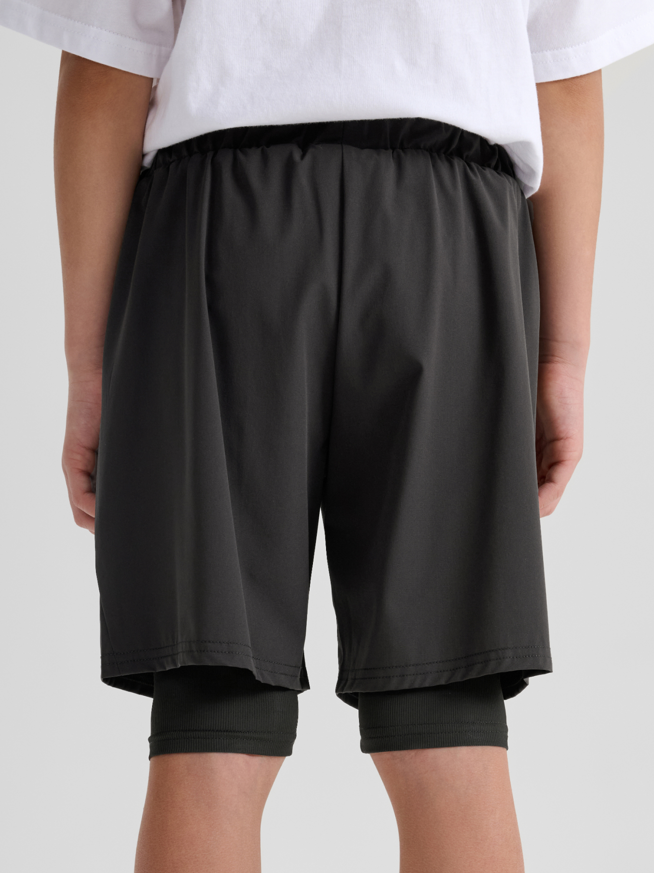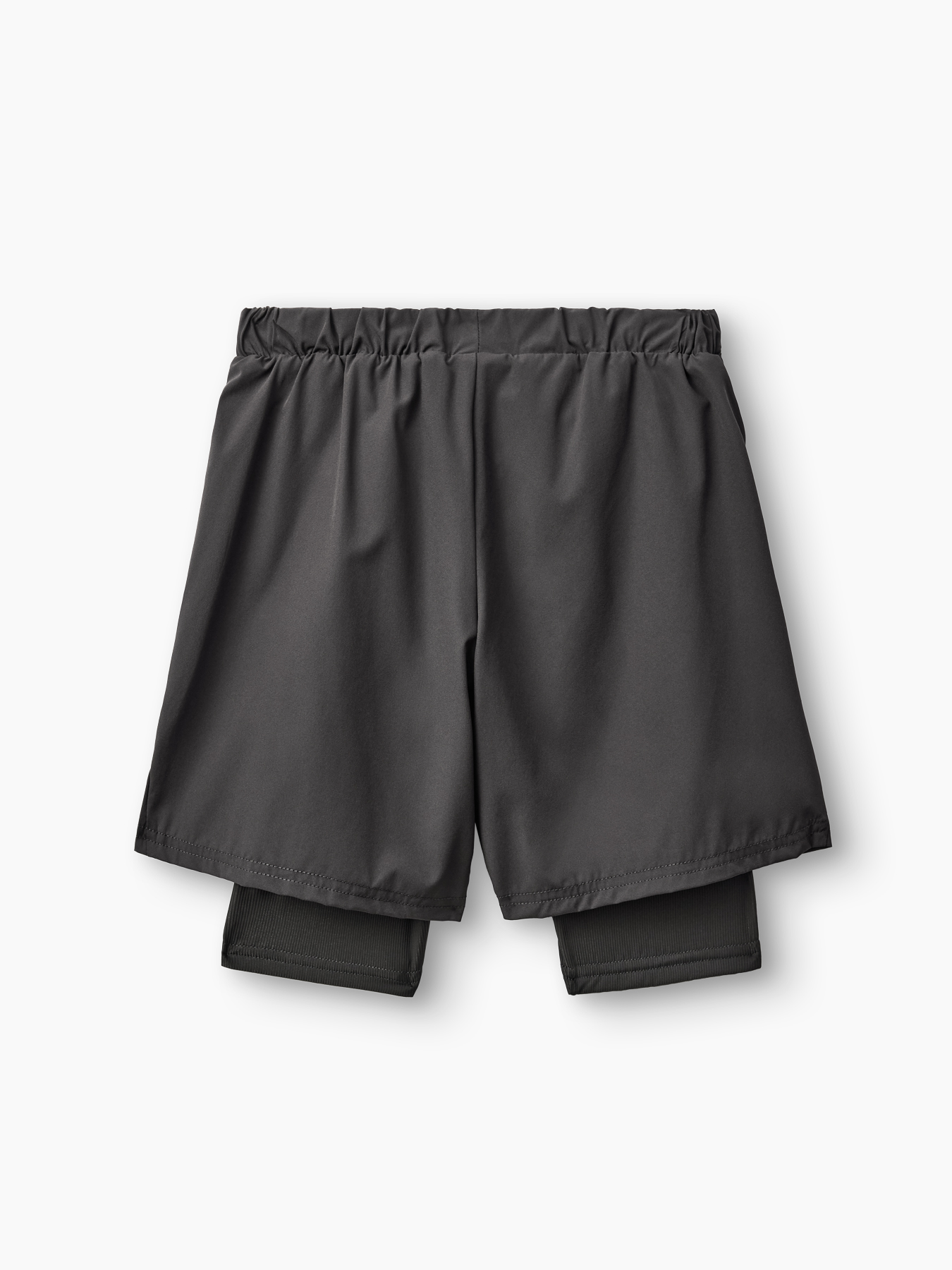 Шорты с дизайном, имитирующим многослойность, создают эффект комбинированной модели: сверху — широкие шорты, а под ними — словно велосипедки. Такой стиль напоминает спортивную форму для тренажерного зала, обеспечивая максимальный комфорт и свободу движений. Пояс на резинке гарантирует отличную посадку, а сам дизайн делает шорты не только удобными, но и стильными. Эти шорты идеально подходят для тренировок, активных прогулок или создания необычных спортивных образов.