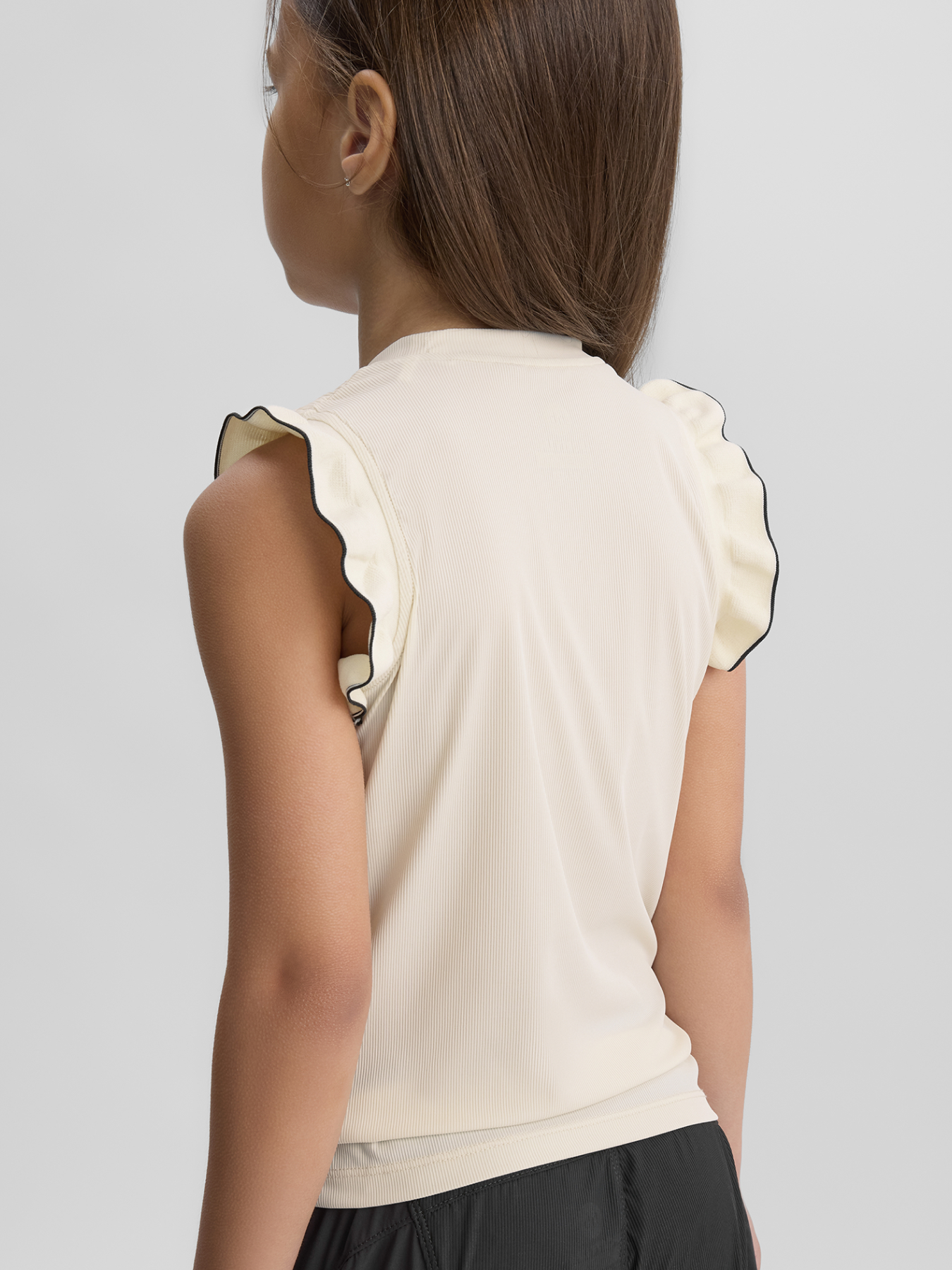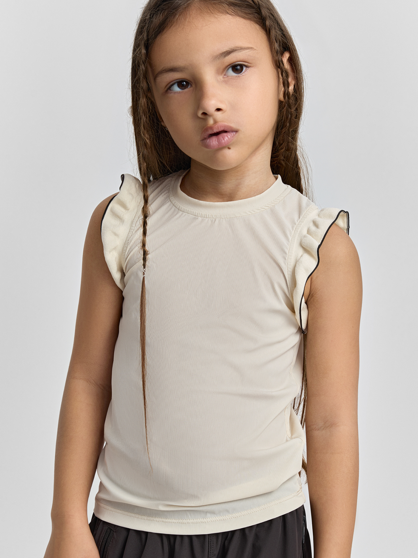 Майка для девочки станет идеальным дополнением гардероба маленькой модницы. Этот топ отлично подходит как для повседневной носки, так и для особых случаев — рюши на рукавах напоминают крылышки и украсят любой образ. Особое внимание стоит уделить укрепленной горловине, которая обеспечивает дополнительную надежность и не растянется после стирки. Эластичный материал позволяет свободно двигаться и чувствовать себя уютно в течение всего дня, а дышащая ткань не даст ребенку запариться в жаркий летний день. Сочетание стильного дизайна и практичности делает эту модель универсальной. Майка детская также станет отличным выбором на летние прогулки или отдых у моря.
