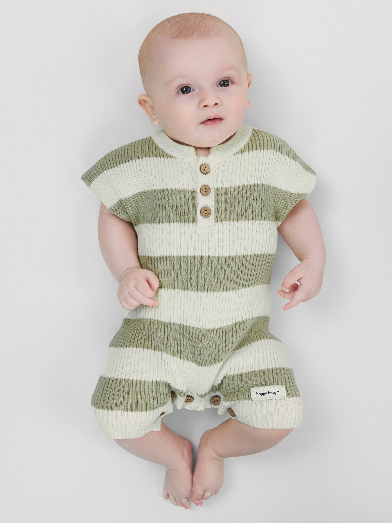 Вязаный комбинезон-песочник – уютный и комфортный вариант для жаркой погоды. 100% хлопок, из которого связан костюмчик — натуральный материал, который дышит, спасает от перегрева и хорошо отводит влагу. Застежка на кнопки в области горловины облегчает процесс одевания, а кнопки в зоне подгузника позволяют быстро переодеть малыша. Проработанное лекало гарантирует свободу движений и удобство во время сна и бодрствования.
