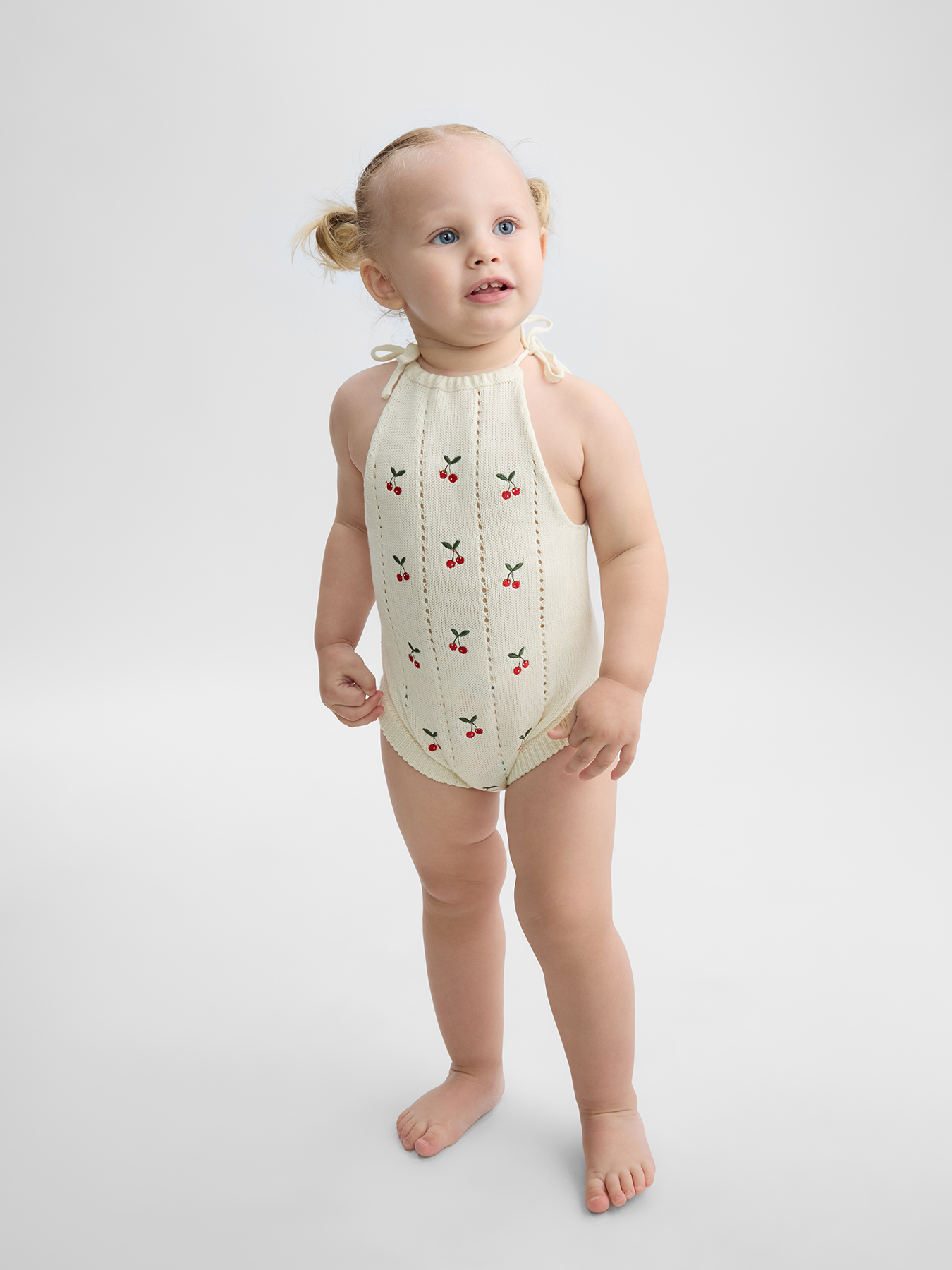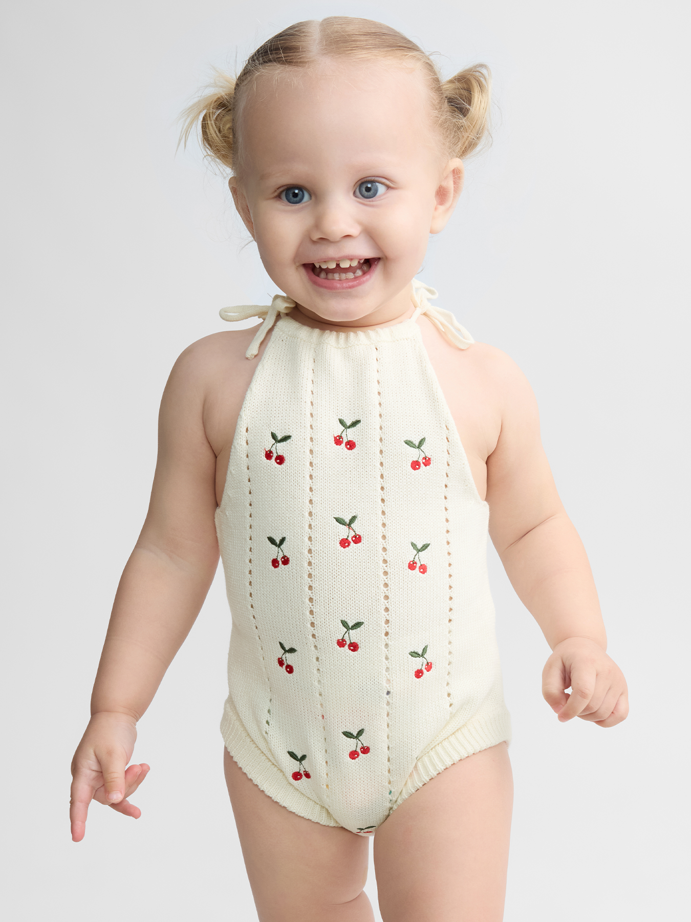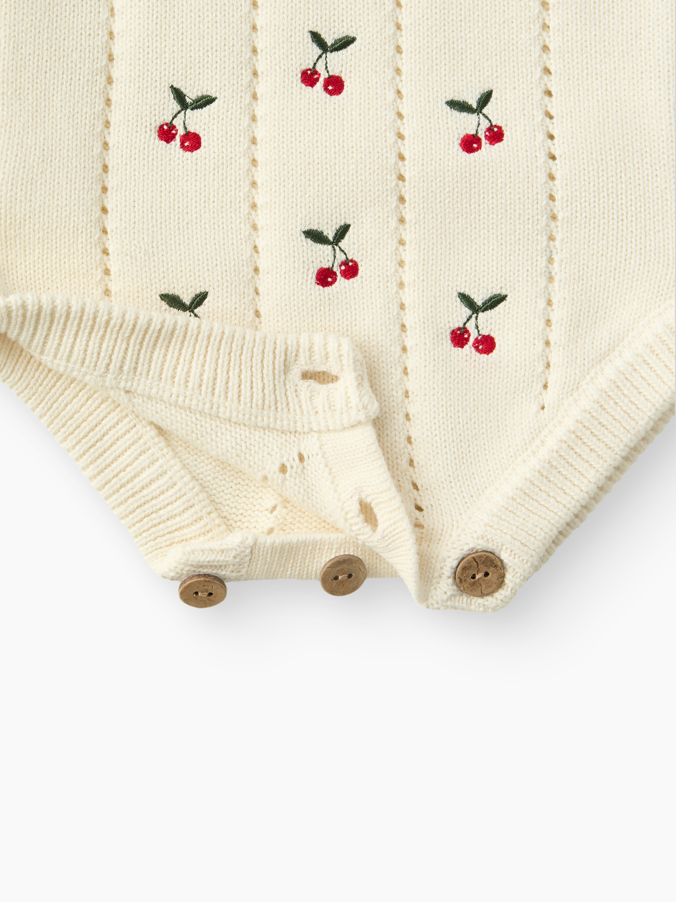 Песочник для новорожденных — это идеальный выбор для первых дней жизни вашего малыша. Универсальный предмет одежды обеспечивает комфорт в первые месяцы жизни. Приятный спокойный цвет в сочетании с яркими вишенками позволит выразить индивидуальность вашей новорожденной девочки, создавая уютный образ. Кроме того, это отличный вариант для семейных фотосессий. Боди на завязках удобно надевается и снимается, а также позволяет подобрать идеальную посадку для ребенка. Застежки - пуговицы помогут молодым родителям быстро сменить подгузник. Материал — 100% хлопок. Вязанная ткань из хлопкового волокна хорошо пропускает воздух и не позволит младенцу запариться или перегреться в непостоянную весеннюю погоду.