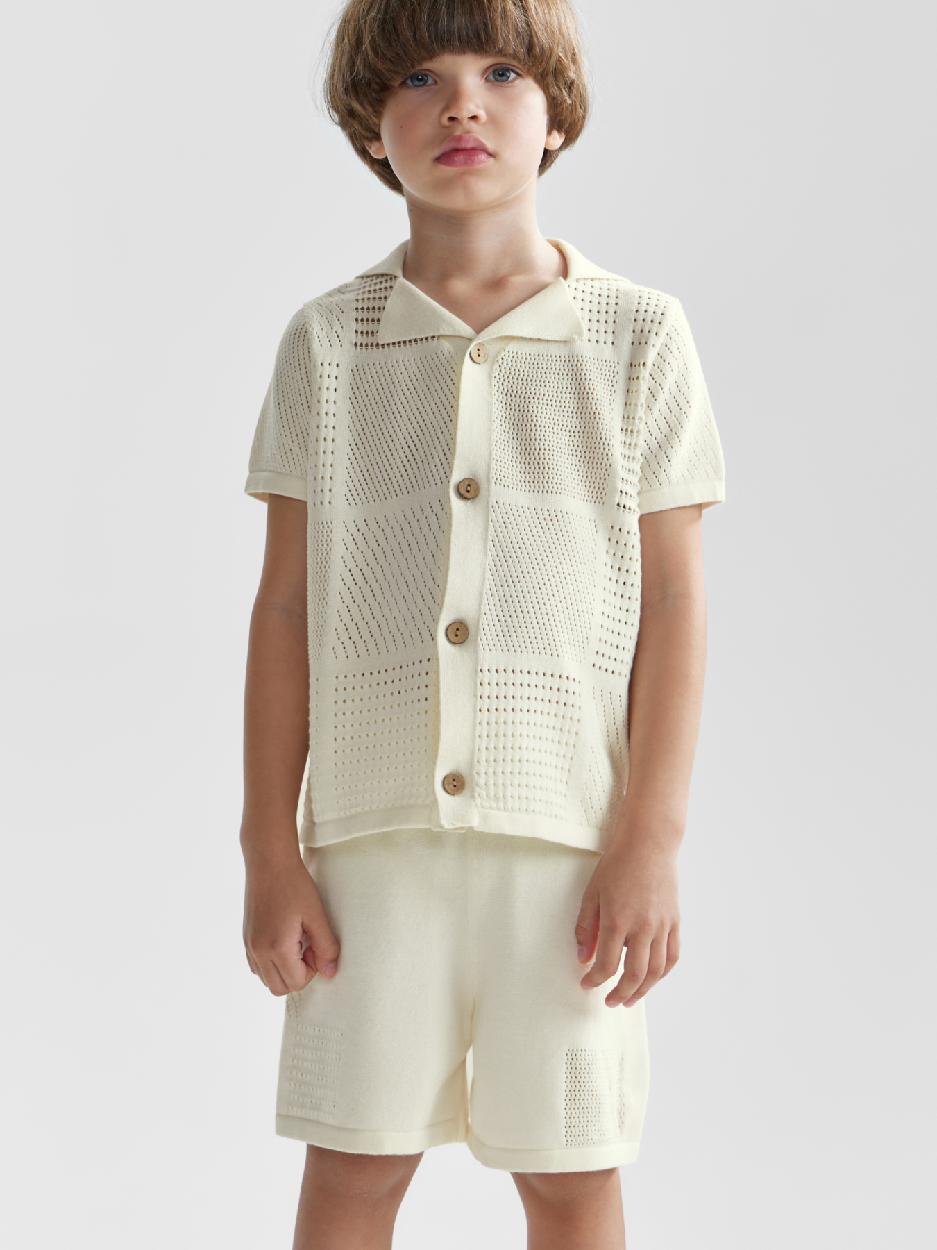Трикотажный костюм – стильный и практичный вариант на лето. Вместе создают идеальный комплект, который не нуждается в дополнении. Можно носить по отдельности. Рубашка с воротником Camp скроена так, что оставляет полную свободу движений. Застегивается на пуговицы. Шорты мягкие, комфортные. Посадка регулируется с помощью шнурка. Комплект идеально подойдет для создания модных образов для девочек и мальчиков.