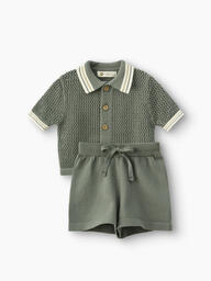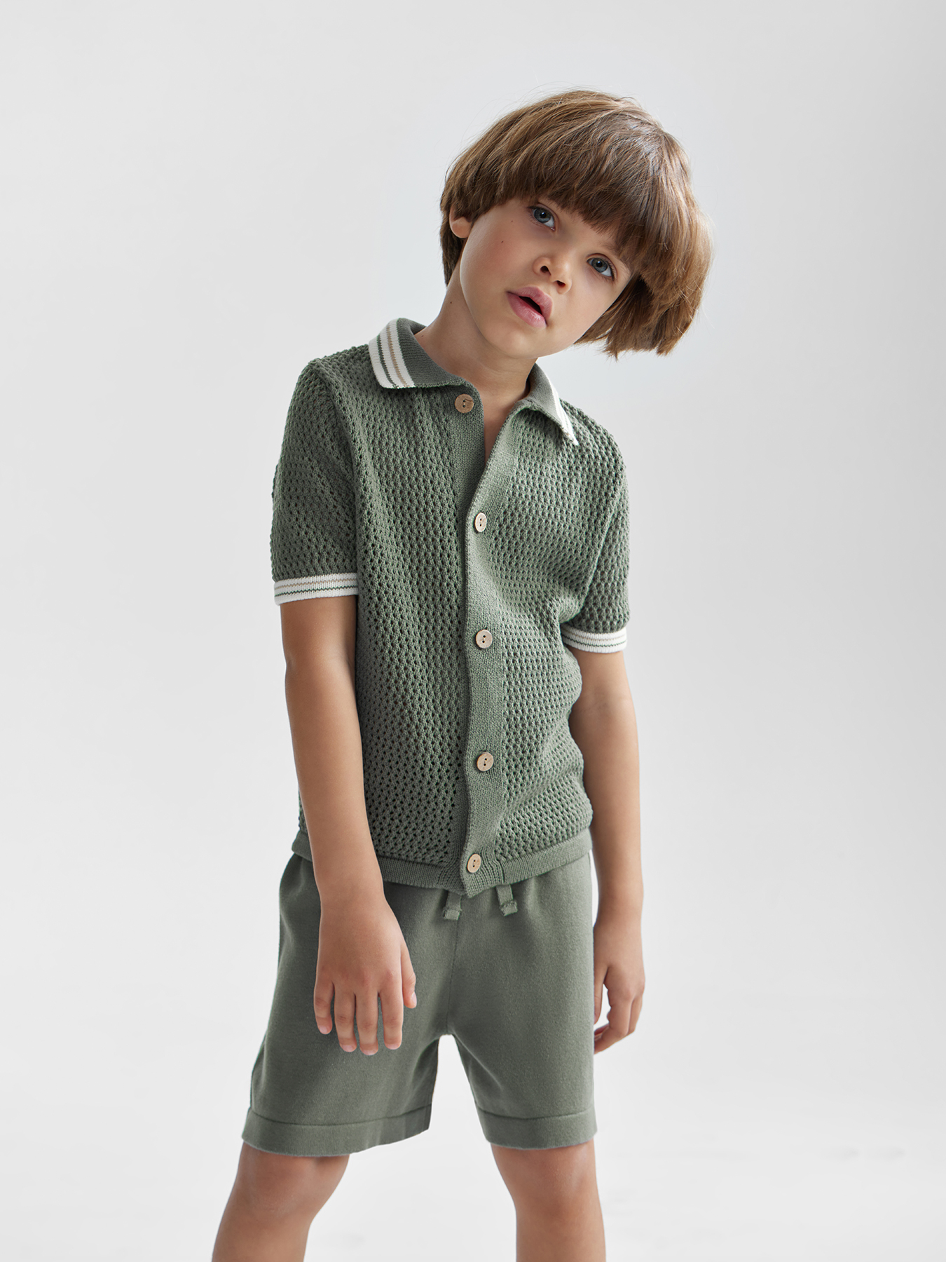 Трикотажный костюм – стильный и практичный вариант на лето. Вместе создают идеальный комплект, который не нуждается в дополнении. По отдельности приносят в образ нотку стиля Old Money. Рубашка с контрастным воротником скроена так, что оставляет полную свободу движений. Застегивается на пуговицы. Шорты мягкие, комфортные. Посадка регулируется с помощью шнурка. Комплект идеально подойдет для создания модных образов для девочек и мальчиков.