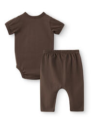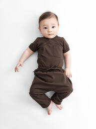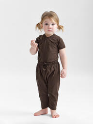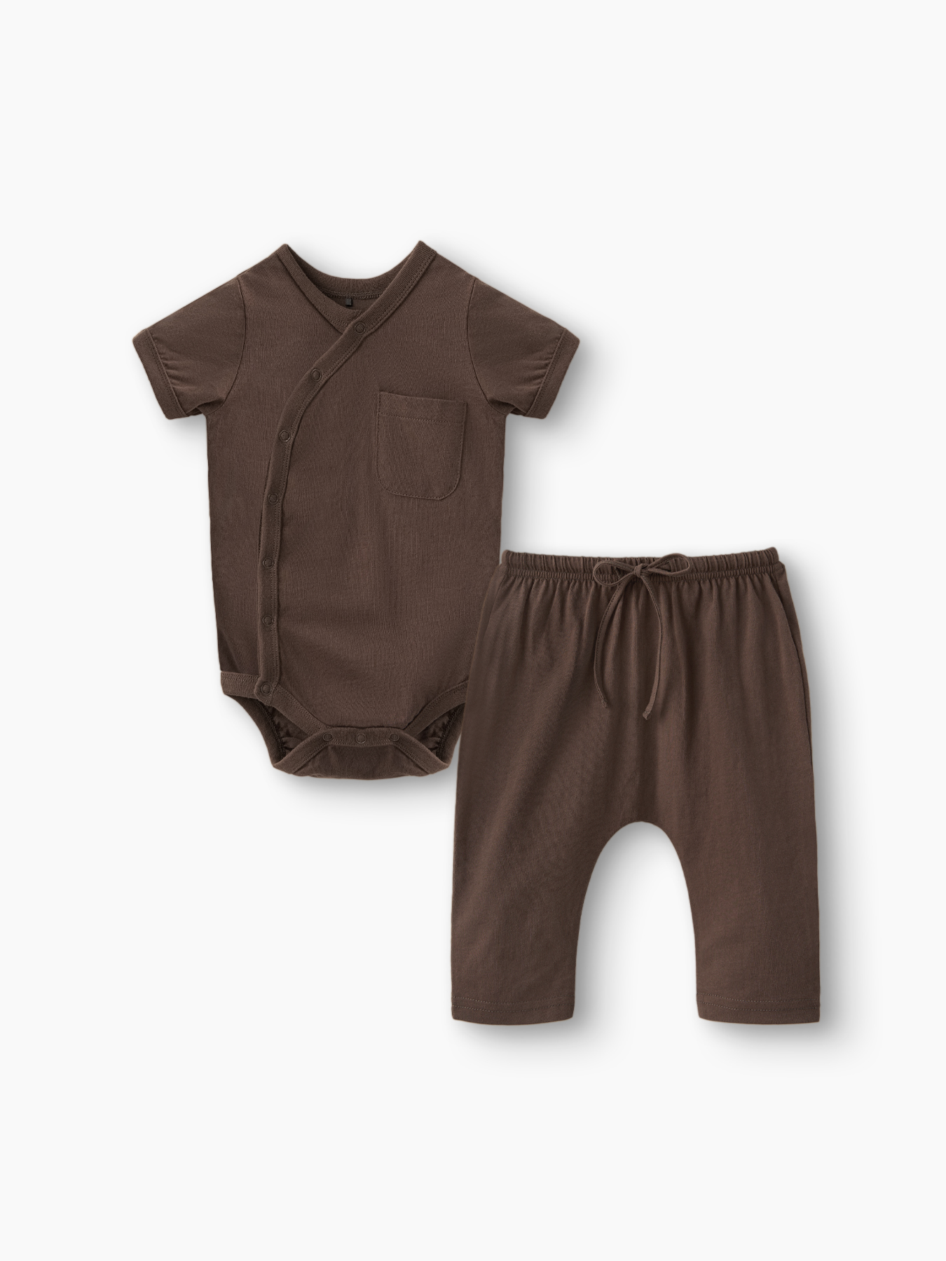 Набор для малыша из мягкого хлопкового трикотажа — удобное и практичное решение для повседневного ухода. Боди с застежкой кимоно легко надевать и снимать, а кнопка внизу облегчает смену подгузника. Продуманное лекало учитывает особенности фигуры малыша и оставляет место для подгузника. Штанишки на завязках мягко фиксируются на животике, не пережимая его. Материал дышит, приятен к коже и хорошо выдерживает частые стирки.