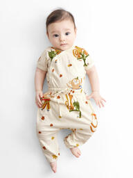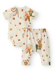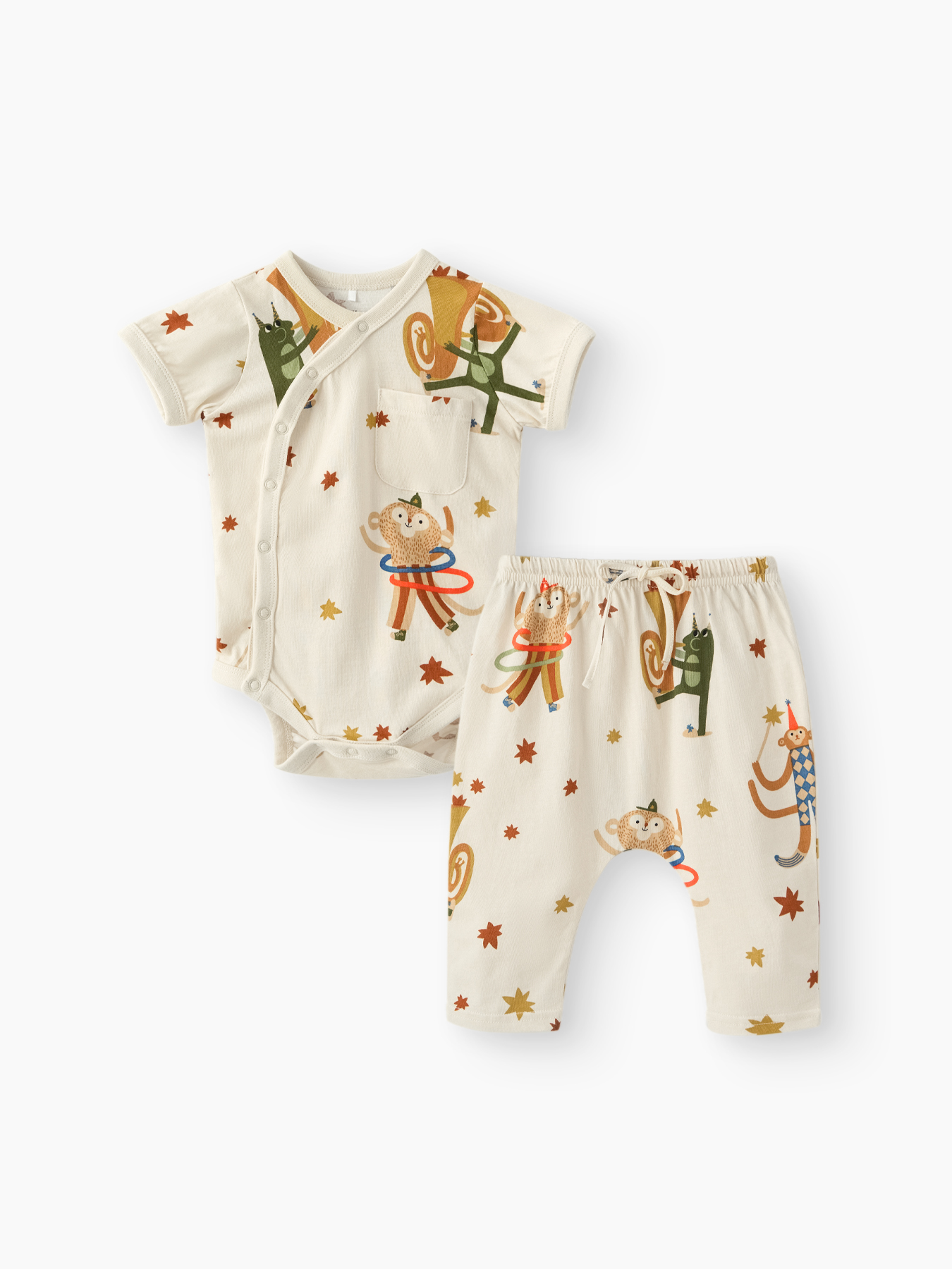Набор для малыша из мягкого хлопкового трикотажа — удобное и практичное решение для повседневного ухода. Боди с застежкой кимоно легко надевать и снимать, а кнопка внизу облегчает смену подгузника. Продуманное лекало учитывает особенности фигуры малыша и оставляет место для подгузника. Штанишки на завязках мягко фиксируются на животике, не пережимая его. Материал дышит, приятен к коже и хорошо выдерживает частые стирки.