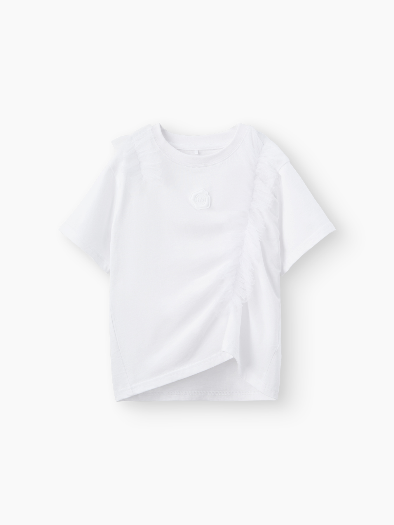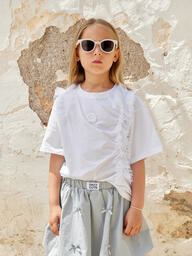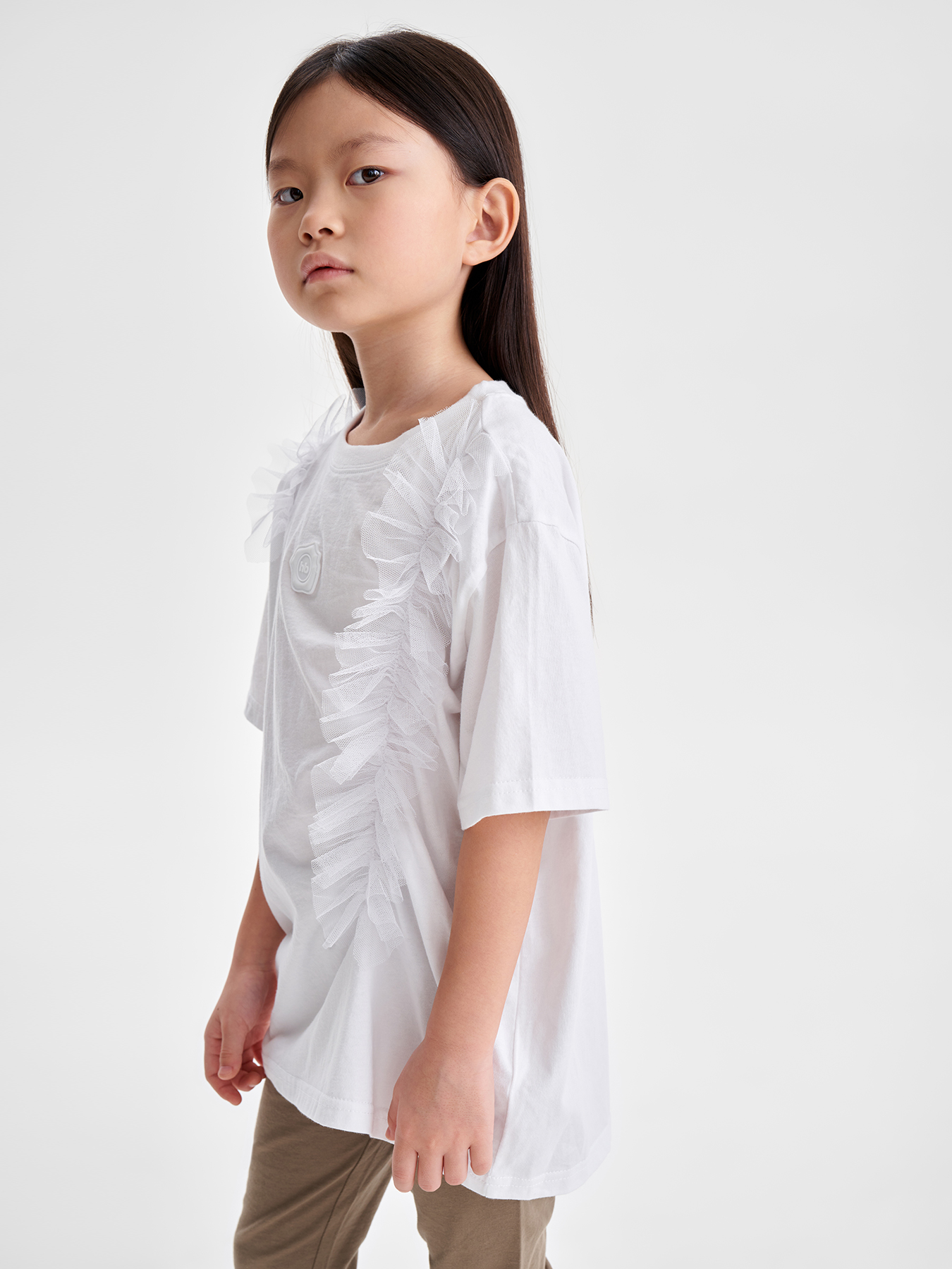 Стильная футболка для девочки от Happy Baby из 100% хлопка - это идеальное сочетание комфорта, качества и современного дизайна. Материал майки для девочки, изготовленный из натуральных волокон, обеспечивает отличную воздухопроницаемость, мягкость и гипоаллергенность, что особенно важно для чувствительной кожи ребёнка. Свободный силуэт футболки детской позволяет чувствовать себя комфортно в течение всего дня, независимо от уровня активности. Футболка для девочки дополнена романтичными рюшами и драпировками, которые придают изделию особый шарм и актуальный элемент декора, подчёркивая индивидуальность юной модницы. Усиленная горловина сохраняет форму даже после многократных стирок, предотвращая деформацию и растяжение ткани. Такая детская футболка легко комбинируется с различными элементами гардероба: джинсами, брюками, шортами или юбками, создавая как повседневные, так и нарядные образы. Благодаря продуманному дизайну и практичности детская футболка для девочки становится незаменимой вещью в гардеробе каждой маленькой модницы.