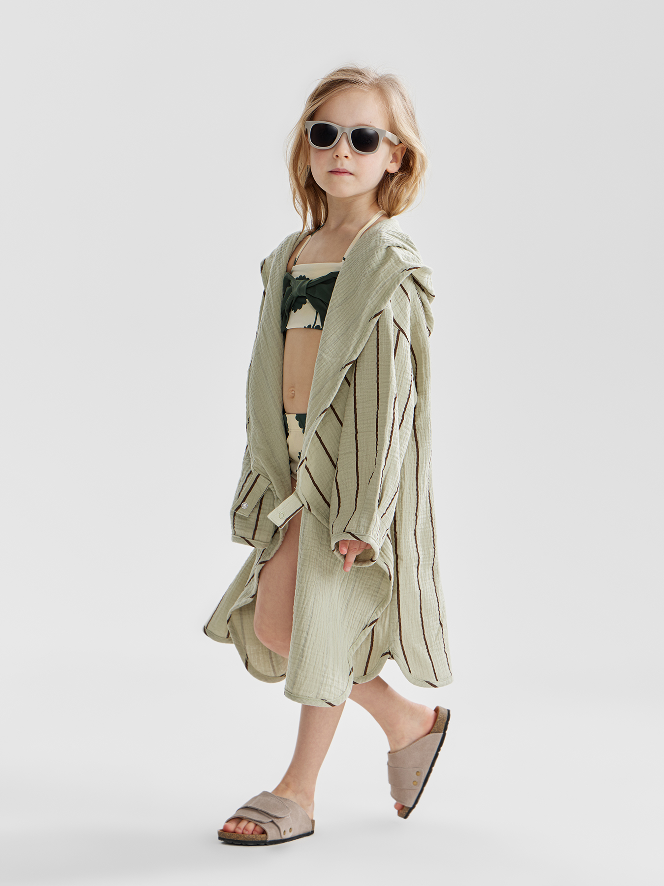 Раздельный купальник в стиле ретро удобен для игр в воде и на суше. Лекало топа обеспечивает правильную посадку и надёжную фиксацию – топ не съезжает и не задирается. Стильные плавки оснащены мягкими резиночками, которые надежно фиксируют купальник и не пережимают нежную детскую кожу. Практичный быстросохнущий материал обладает свойством блокировки ультрафиолета с фактором UPF 50+, что означает наивысшую степень защиты. Актуальный дизайн сделает образ милым, а летние фотографии яркими.
