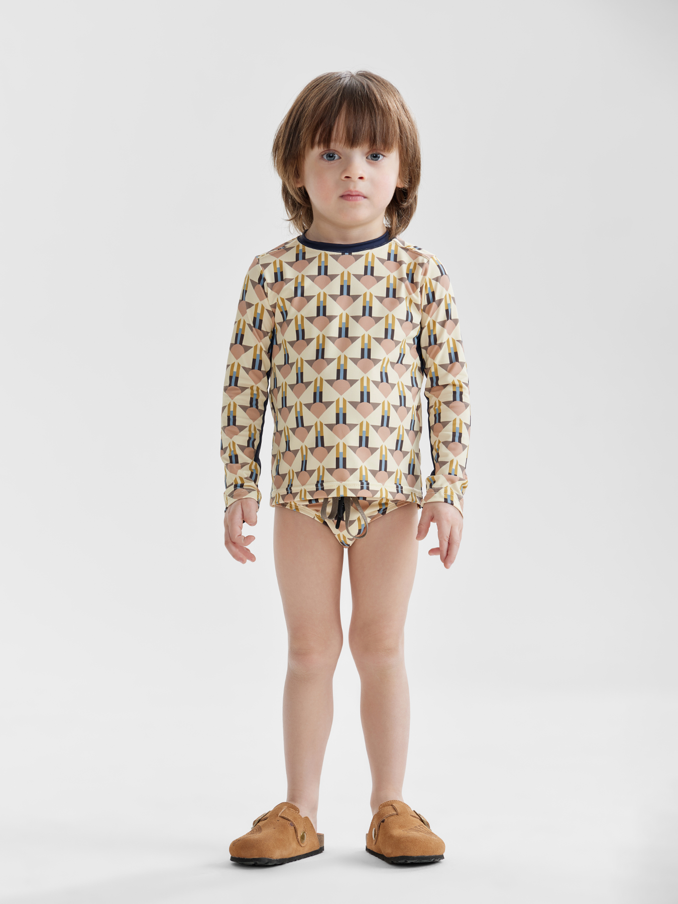 Удобные плавки быстро сохнут и оставляют полную свободу движений. Надежно фиксируются с помощью шнурка на поясе. Сшиты из приятной ткани, которая быстро сохнет – малыш будет находиться в комфорте и тепле все время пребывания на пляже. Материал обладает наивысшим фактором защиты от ультрафиолета UPF 50+. Благодаря яркой расцветке ребенок хорошо заметен в море, в бассейне и на берегу.