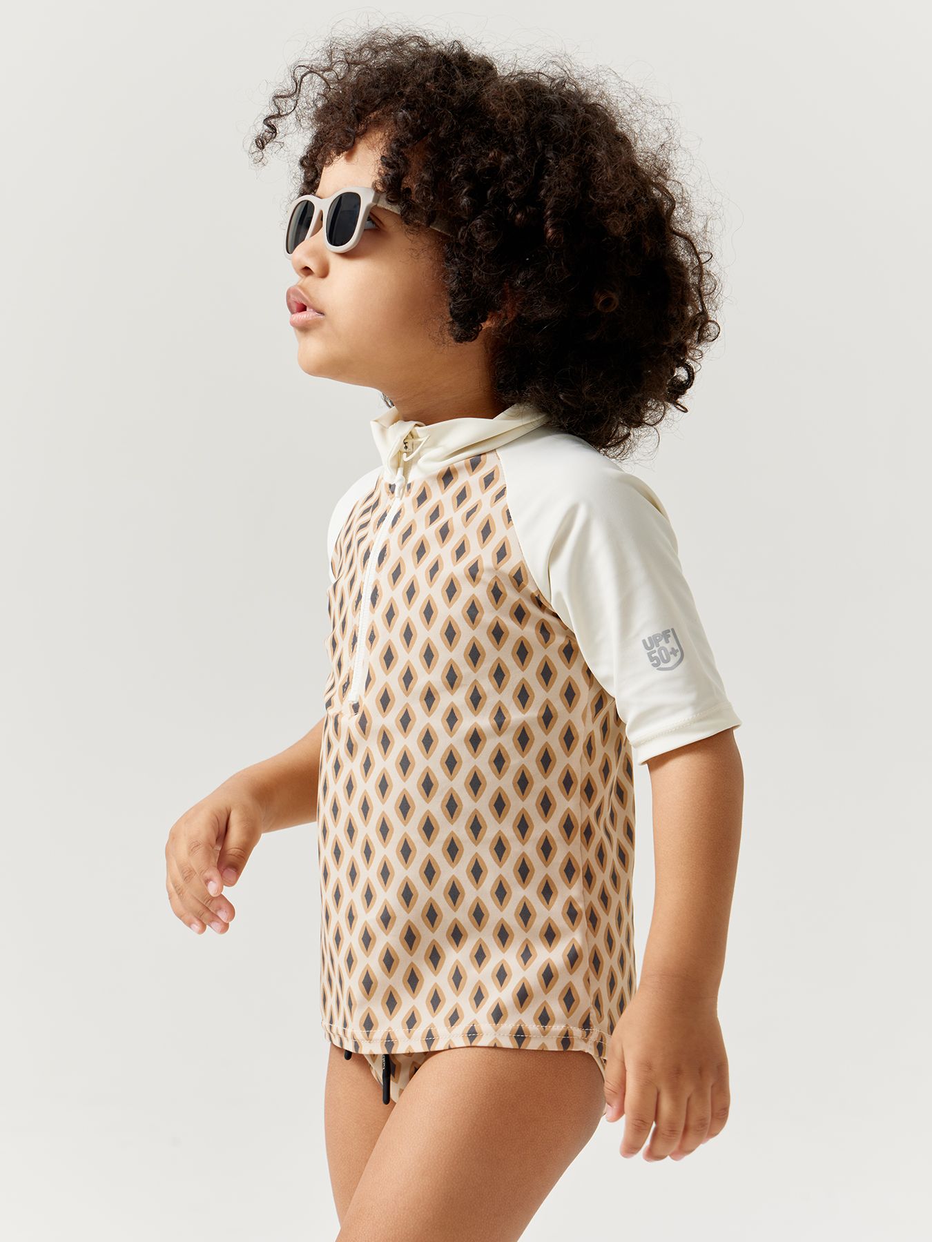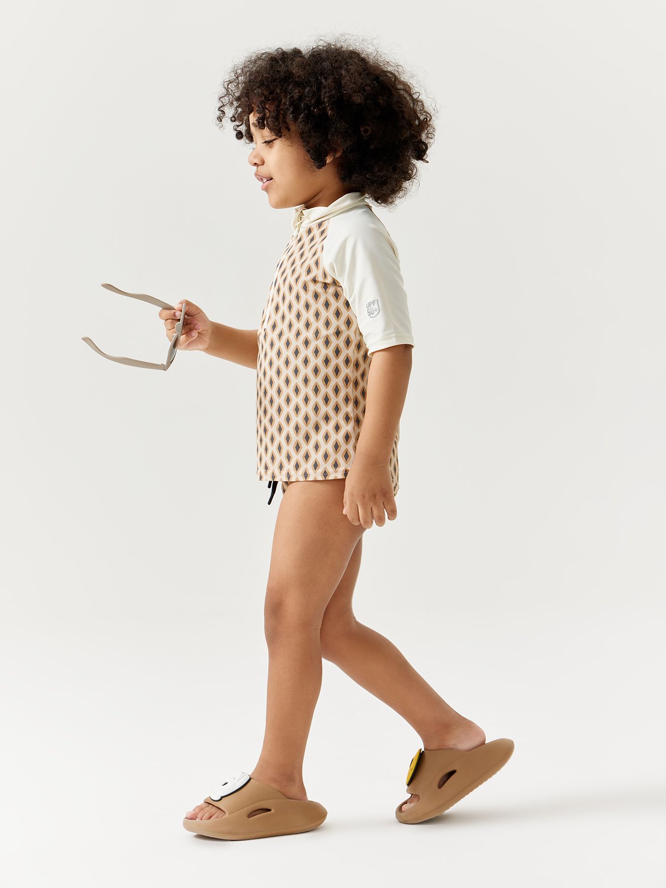 Удобные плавки быстро сохнут и оставляют полную свободу движений. Надежно фиксируются с помощью шнурка на поясе. Сшиты из приятной ткани, которая быстро сохнет – малыш будет находиться в комфорте и тепле все время пребывания на пляже. Материал обладает наивысшим фактором защиты от ультрафиолета UPF 50+. Благодаря яркой расцветке ребенок хорошо заметен в море, в бассейне и на берегу.