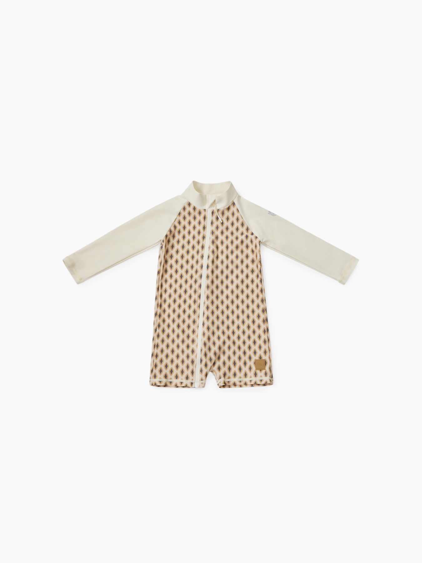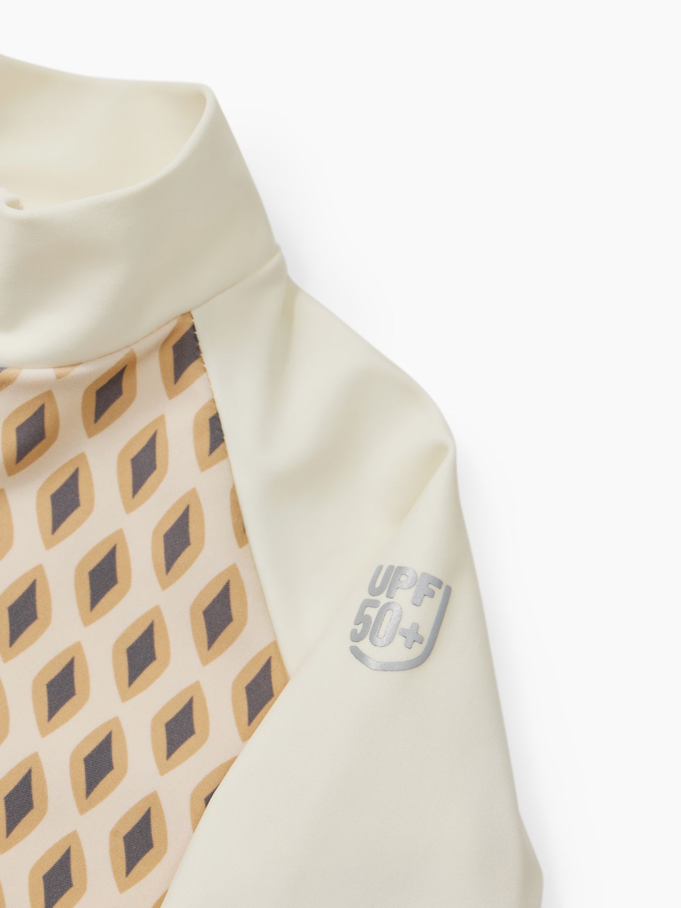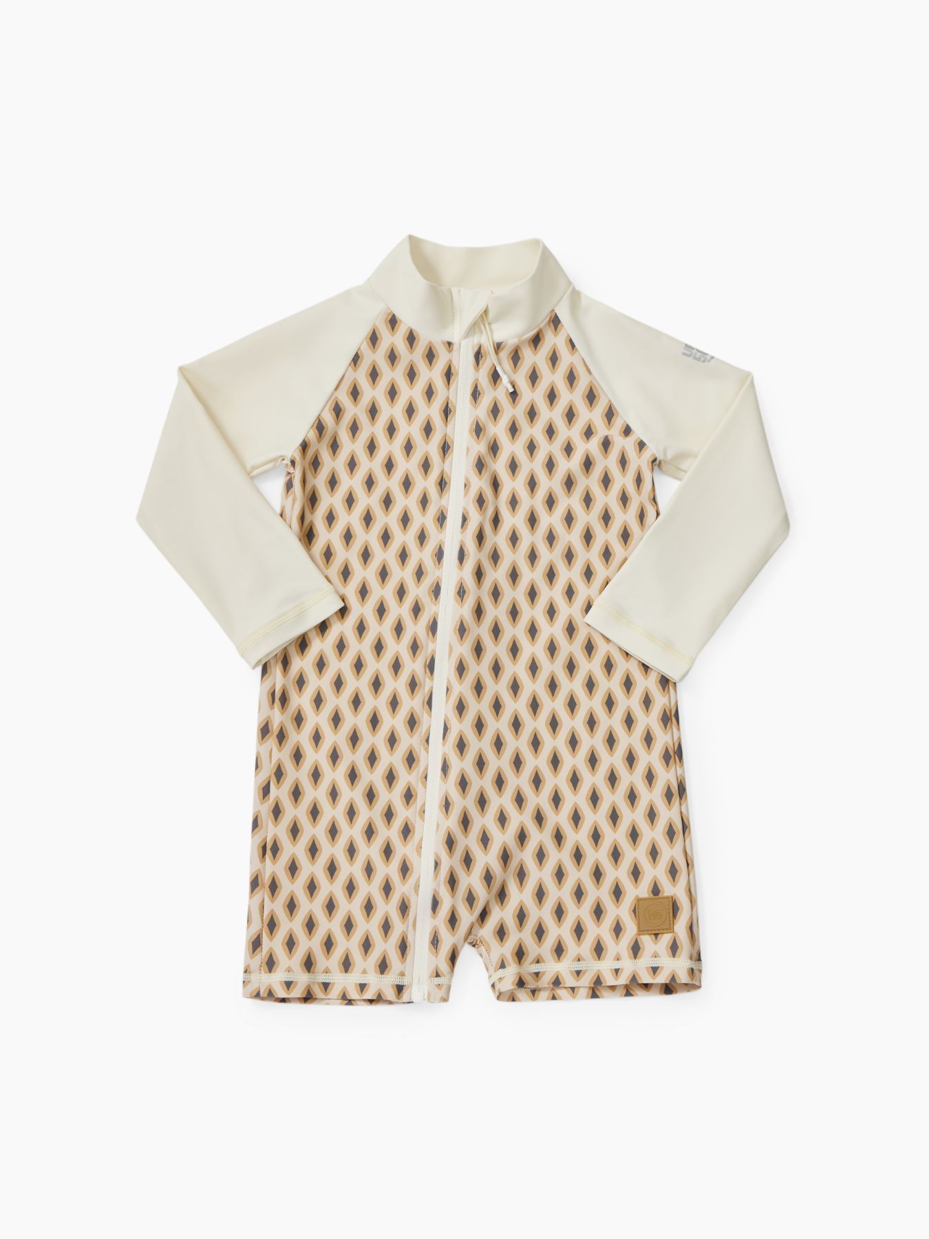 Купальный костюм с рукавами необходим для защиты детей от агрессивного солнца и ультрафиолета во время игр в воде и на берегу. Идеально подойдет, если переодеть малыша нужно быстро, застёгивается на молнию. Свободная посадка и отсутствие резинок на поясе понравится самым чувствительным детям. Размерная сетка предусматривает, что костюм будет впору пару сезонов. Костюм из мягкой ткани быстро сохнет, поэтому малышу будет комфортно играть в воде и на берегу. Ткань с фактором защиты от солнечного излучения UPF50+. Практичный материал удобен в уходе.