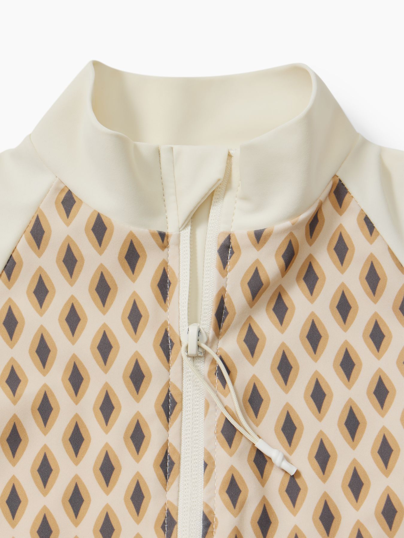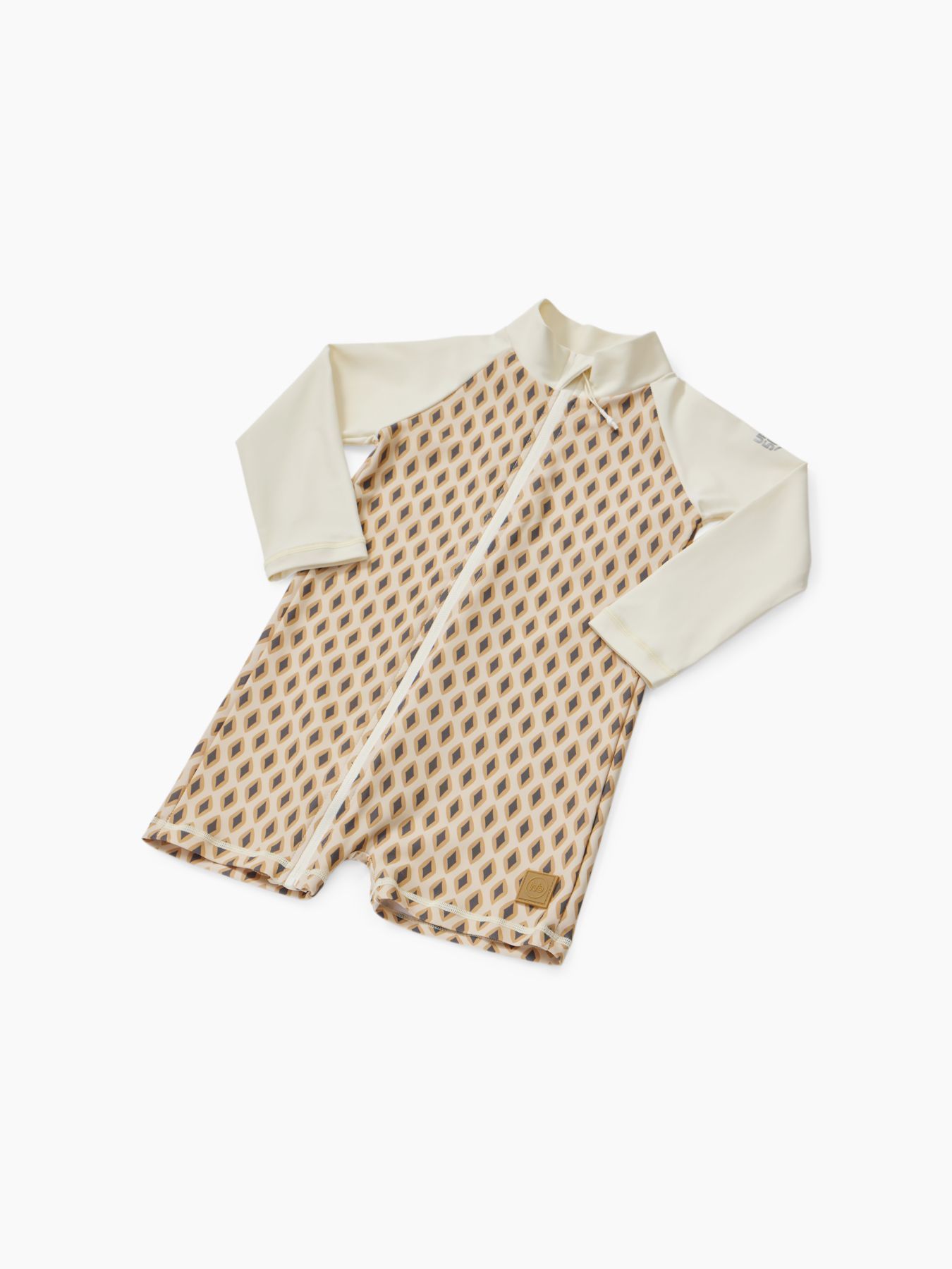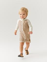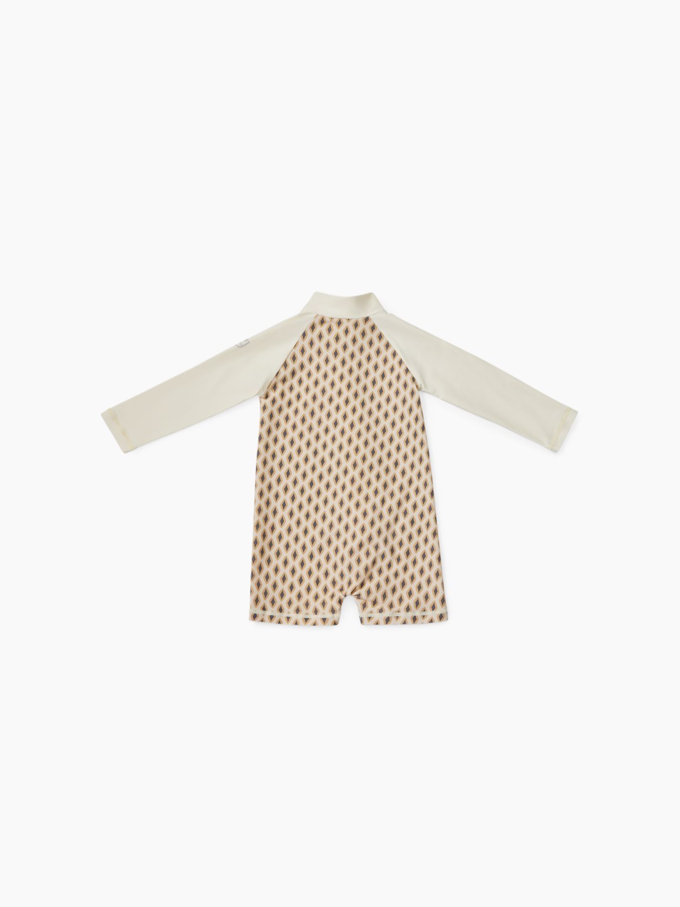 Купальный костюм с рукавами необходим для защиты детей от агрессивного солнца и ультрафиолета во время игр в воде и на берегу. Идеально подойдет, если переодеть малыша нужно быстро, застёгивается на молнию. Свободная посадка и отсутствие резинок на поясе понравится самым чувствительным детям. Размерная сетка предусматривает, что костюм будет впору пару сезонов. Костюм из мягкой ткани быстро сохнет, поэтому малышу будет комфортно играть в воде и на берегу. Ткань с фактором защиты от солнечного излучения UPF50+. Практичный материал удобен в уходе.