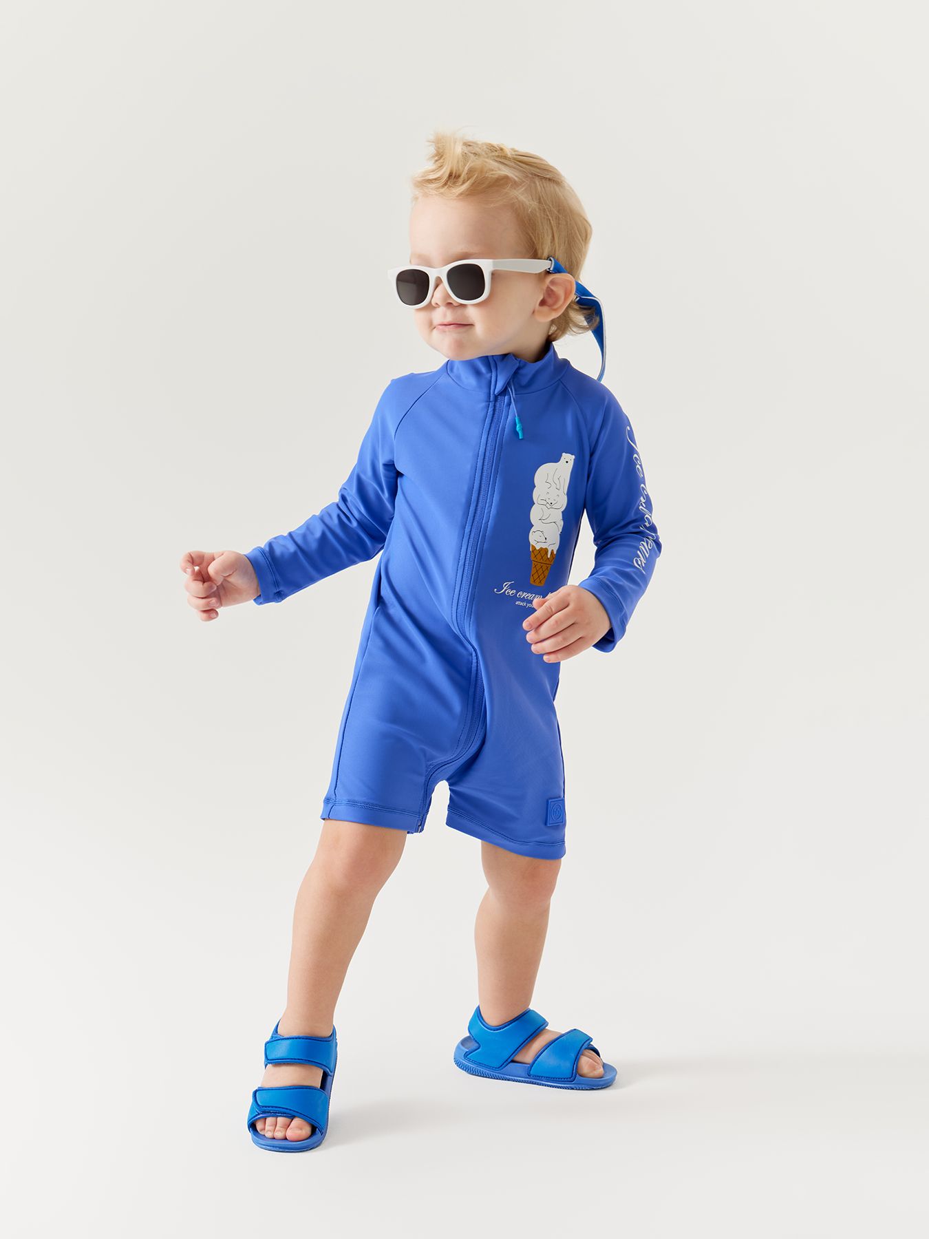 Купальный костюм с рукавами необходим для защиты детей от агрессивного солнца и ультрафиолета во время игр в воде и на берегу. Идеально подойдет, если переодеть малыша нужно быстро, застёгивается на молнию. Свободная посадка и отсутствие резинок на поясе понравится самым чувствительным детям. Размерная сетка предусматривает, что костюм будет впору пару сезонов. Костюм из мягкой ткани быстро сохнет, поэтому малышу будет комфортно играть в воде и на берегу. Ткань с фактором защиты от солнечного излучения UPF50+. Практичный материал удобен в уходе.