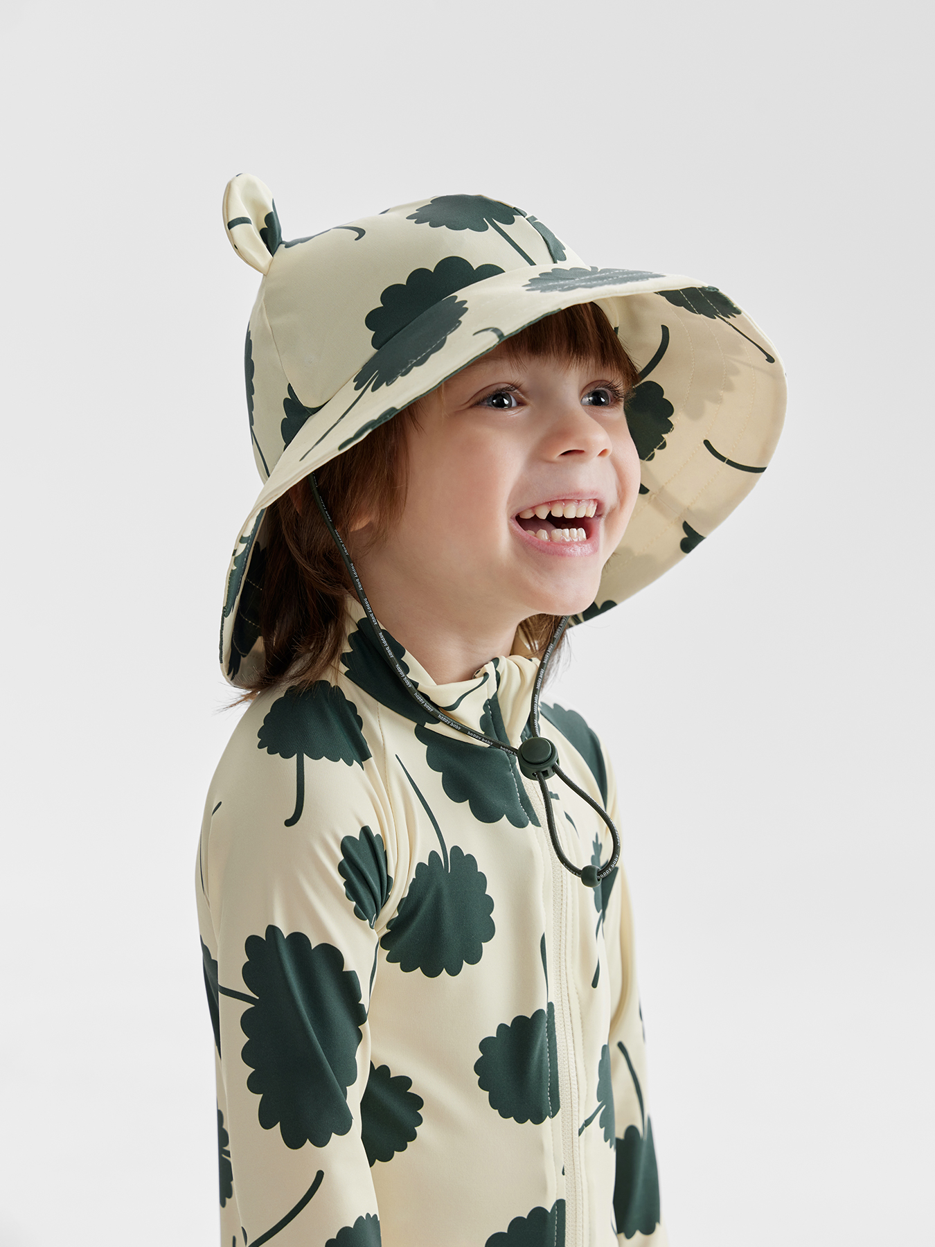 Панама с ушками незаменима для милых образов и надёжной защиты от солнца. Широкие поля берегут лицо, уши и шею от солнечных лучей. Материал быстро сохнет, не выгорает на солнце и обладает максимальным фактором защиты от ультрафиолета UPF 50+. Мягкий замкнутый шнурок с фиксатором надёжно крепит панаму на голове и бережёт от утери.