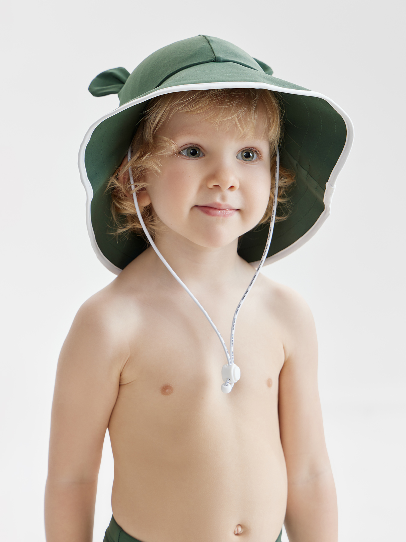 Панама с ушками незаменима для милых образов и надёжной защиты от солнца. Широкие поля берегут лицо, уши и шею от солнечных лучей. Материал быстро сохнет, не выгорает на солнце и обладает максимальным фактором защиты от ультрафиолета UPF 50+. Мягкий замкнутый шнурок с фиксатором надёжно крепит панаму на голове и бережёт от утери.