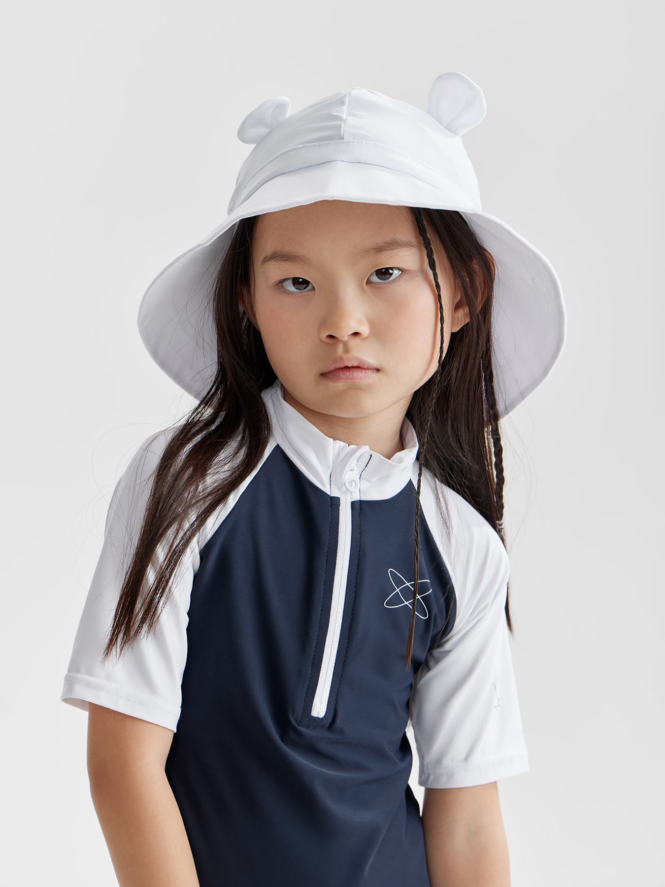 Ассиметричная панама незаменима для игр на пляже. Благодаря продуманному крою тень от полей покрывает лицо, уши, плечи и шею. В этой панаме удобно купаться: материал быстро сохнет, не выгорает на солнце и обладает максимальным фактором защиты от ультрафиолета UPF 50+. Мягкий замкнутый шнурок с фиксатором бережёт от потери.