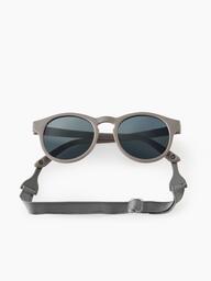 Солнцезащитные очки с ремешком защитят глазки малыша от ультрафиолета и точно не потеряются. Линзы изготовлены из поликарбоната. Это лёгкий и прочный материал обеспечит удобство в носке, а показатель блокировки ультрафиолета UV400 гарантирует максимальную защиту от солнца. Оправа и дужки из резины не скользят, материал приятен коже. Классическая форма подойдёт и мальчикам, и девочкам. Прочный ремешок крепится за дужки и не мешает ребёнку, защищая аксессуар от утери.