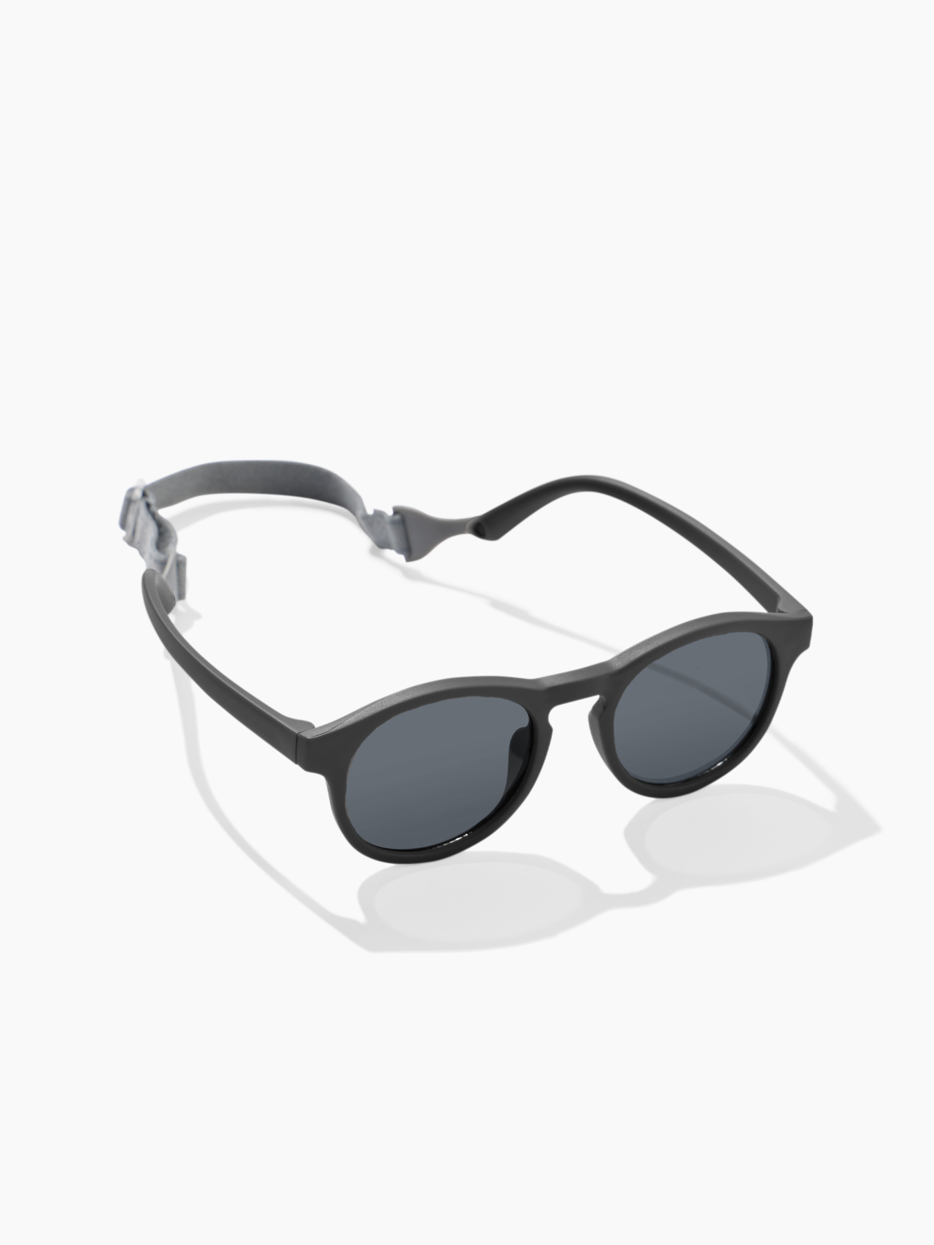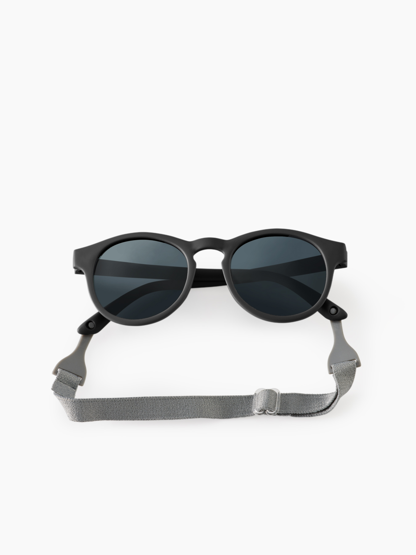 Солнцезащитные очки с ремешком защитят глазки малыша от ультрафиолета и точно не потеряются. Линзы изготовлены из поликарбоната. Это лёгкий и прочный материал обеспечит удобство в носке, а показатель блокировки ультрафиолета UV400 гарантирует максимальную защиту от солнца. Оправа и дужки из резины не скользят, материал приятен коже. Классическая форма подойдёт и мальчикам, и девочкам. Прочный ремешок крепится за дужки и не мешает ребёнку, защищая аксессуар от утери.