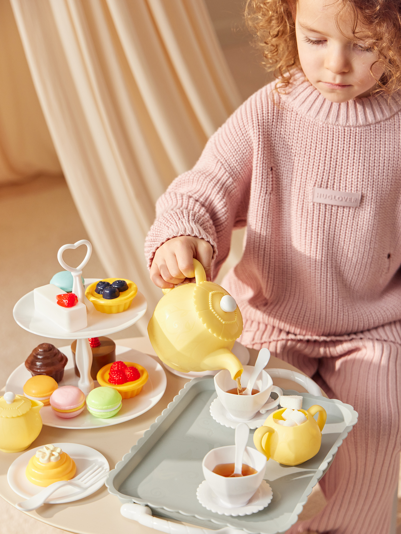 Игровой набор TEA PARTY TIME превращает чаепитие с игрушками в атмосферное и увлекательное занятие, даря ребёнку радость игры и обучения. В комплект входят миниатюрный чайник с крышкой, сахарница, две чашки с ложками, сервировочный поднос, а также двухъярусная подставка с разнообразными десертами — яркими макарунами, кексами и пирожными. Благодаря реалистичности деталей ребёнок сможет почувствовать себя настоящим хозяином чаепития. Играя с набором, ребёнок освоит основы сервировки стола, разовьёт мелкую моторику, научится взаимодействовать в ролевых играх и проявлять заботу о других. Набор способствует развитию творческого мышления, воображения и социальных навыков, таких как гостеприимство и умение общаться. Поставляется в красивой подарочной упаковке.