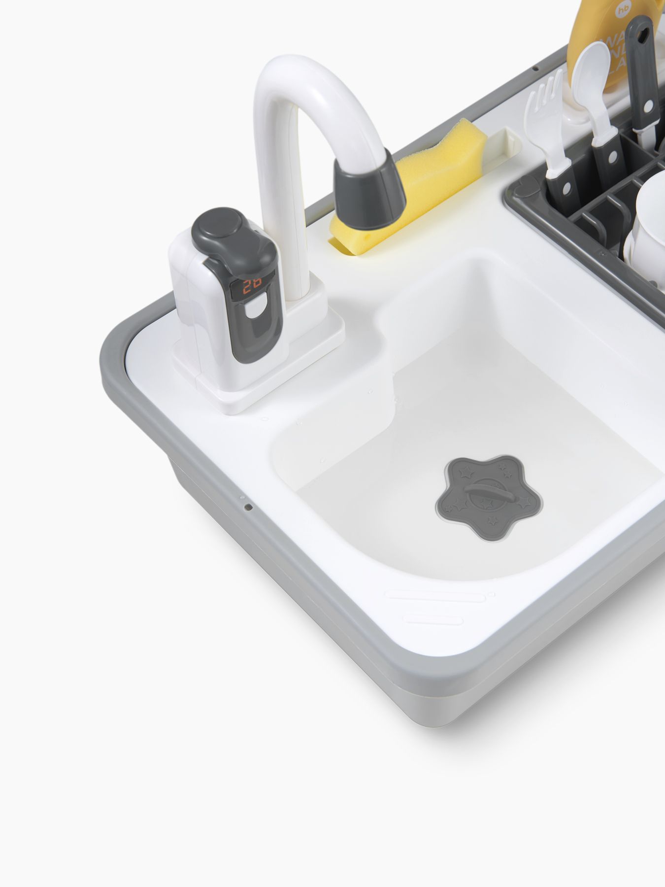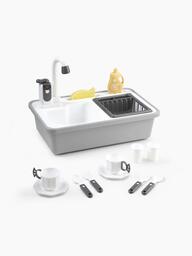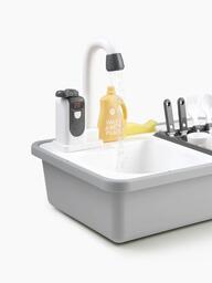 Игры с водой расслабляют ребёнка и повышают настроение, развивают мелкую моторику, память, внимание. Игрушечная мойка даст возможность плескаться в воде, представлять себя взрослым и не терять интерес к домашним делам. Вода в игрушке циркулирует. Наполните мойку водой, включите кран – вода начнёт вытекать через него обратно в мойку, а затем снова попадёт в кран. Играть можно бесконечно. Приятные эмоции обеспечены.