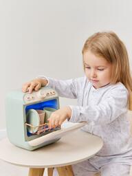 Игрушечная посудомойка прививает любовь к домашним делам с самого детства. Малыша можно отвлечь такой игрушкой от настоящей бытовой техники. Более взрослый ребенок научится пользоваться посудомоечной машиной на примере игрушечной, чтобы потом помогать маме. Стаканы и столовые приборы в наборе сделают игру максимально приближенной к реальности. Необходимость расположить посуду внутри ящика – задача, которая развивает логику и пространственное мышление. Игрушка снабжена звуковыми и световыми эффектами.