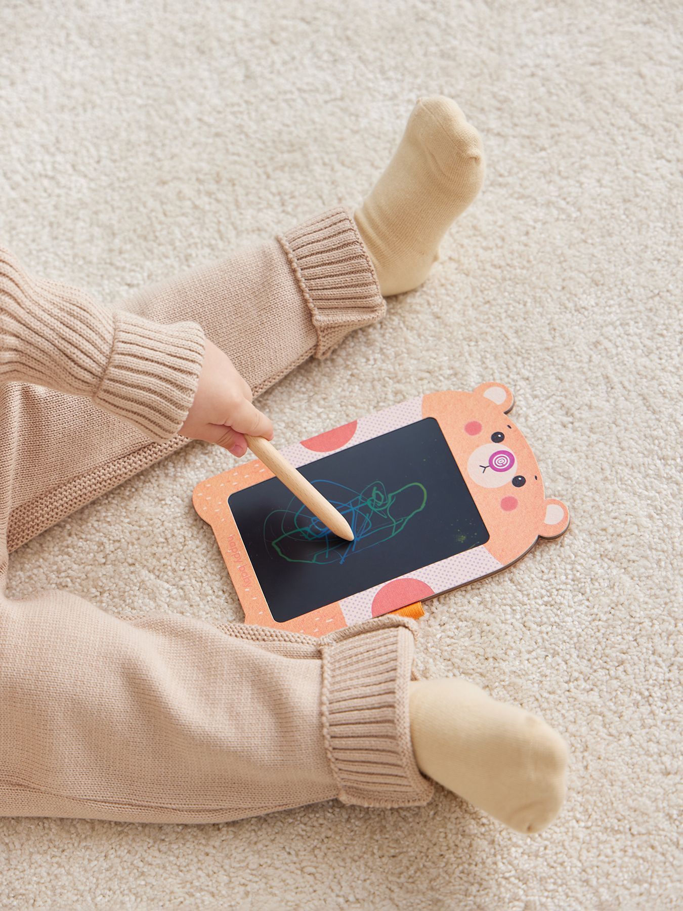 Планшет позволит рисовать без карандашей и бумаги. Его удобно брать с собой в дорогу, чтобы завлечь ребенка и сохранить чистым все вокруг. LCD-экран помещен в приятный на ощупь и легкий корпус из дерева. Рисование производится стилусом, для хранения которого предусмотрено гнездо сбоку, благодаря чему ручка не потеряется. Игрушка имеет компактный размер, удобный для детей. Такой аксессуар можно положить в сумку, чтобы увлечь малыша изучением букв или цифр в очереди к врачу или во время поездок в транспорте. Милый дизайн понравится и мальчикам, и девочкам.