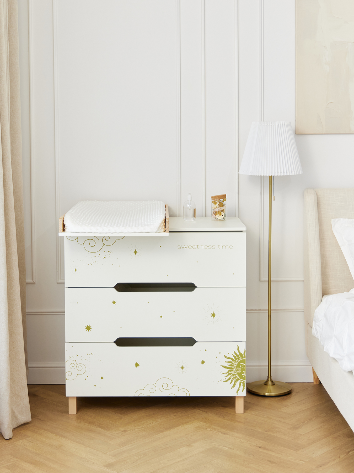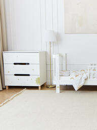 Комод Fioki станет важной частью вашей детской комнаты. Просторные ящики обеспечат хранение всех необходимых вещей для малыша: средств по уходу, пелёнок, одежды и постельного белья. Ящики легко и бесшумно открываются, не нарушая сон ребёнка, а ножки из натурального дерева придают комоду дополнительную устойчивость. Съемный пеленальный столик делает уход за малышом еще проще и удобнее, а его бортики обеспечивают дополнительную безопасность.