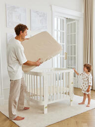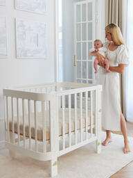 Детская кровать-трансформер MOMMY LOVE™ - это практичное и функциональное решение для растущих семей. Сочетая в себе уют и удобство, она идеально подходит для вашего малыша с самого рождения. Кровать поставляется с мягким мятником для люльки и комплектом расширения, который позволяет адаптировать кровать к потребностям растущего ребенка.