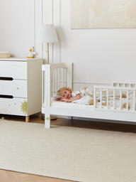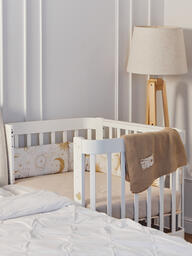 Безопасность малыша крайне важна не только во время дневных игр, но также и во время его сна. В этом вам поможет мягкий бортик, который крепится по периметру кроватки, обеспечивая малыша защитой и комфортом.
