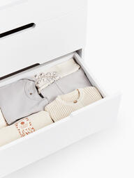 Комплект раздвижных разделителей для ящиков поможет организовать место для хранения как в детской, таки гардеробе. Для установки достаточно изменить длину по размеру ящика и зажать фиксатор. Боковые упорыс противоскользящей прокладкой прочно удержат разделители без повреждения мебели.