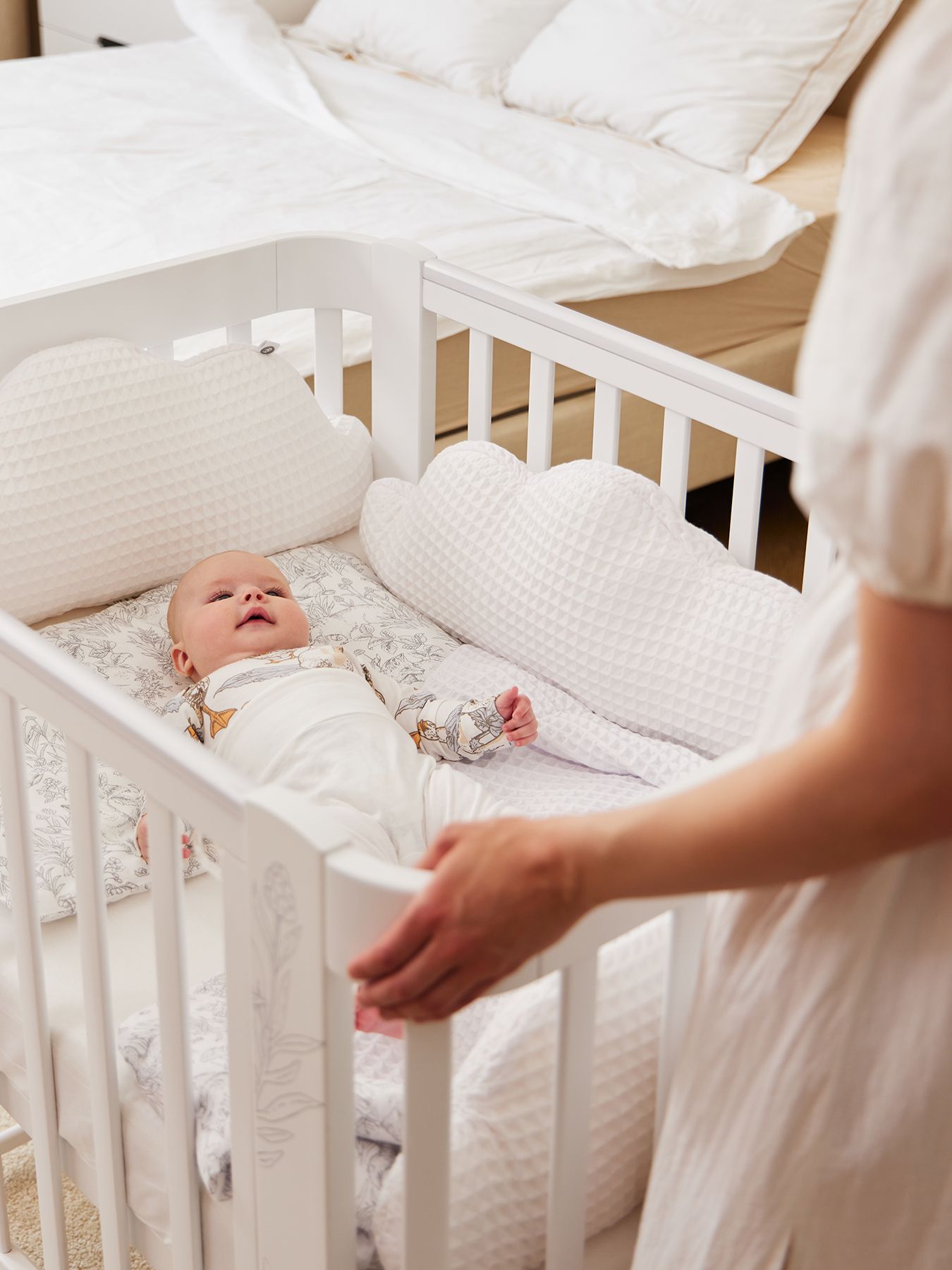 Процесс разборки и установки комплекта расширения максимально прост и интуитивен. Детали легко вставляются, превращая люльку в полноразмерную детскую кровать. Это удобство делает MOMMY LOVE™ отличным выбором для семей, ценящих практичность и легкость использования. Созданная с использованием высококачественных материалов, кровать обеспечивает долговечность и стиль. Современный дизайн и простота в уходе делают MOMMY LOVE™ идеальным местом для отдыха вашего малыша и удобным выбором для вас.