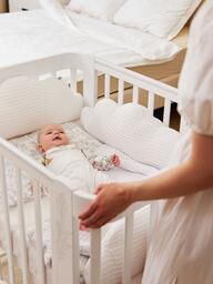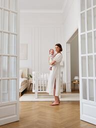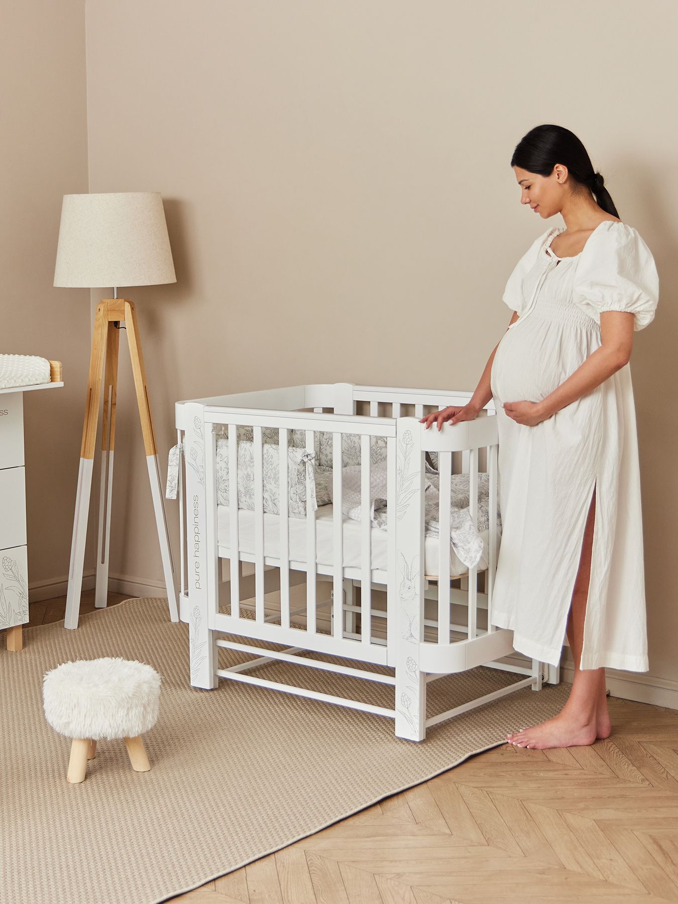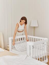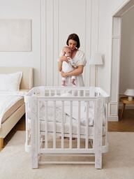 Детская кровать-трансформер MOMMY LOVE™ - это практичное и функциональное решение для растущих семей. Сочетая в себе уют и удобство, она идеально подходит для вашего малыша с самого рождения. Кровать поставляется с мягким мятником для люльки и комплектом расширения, который позволяет адаптировать кровать к потребностям растущего ребенка.