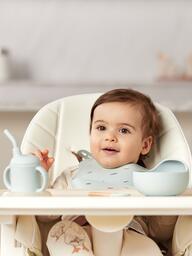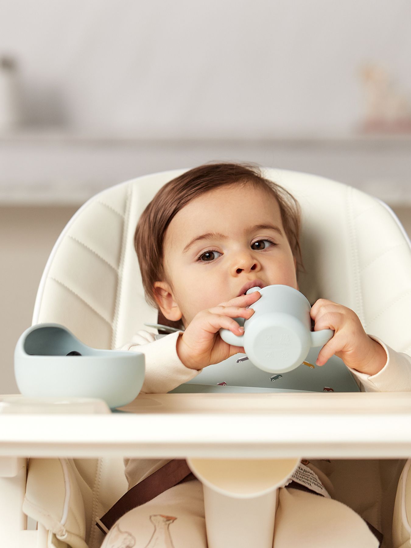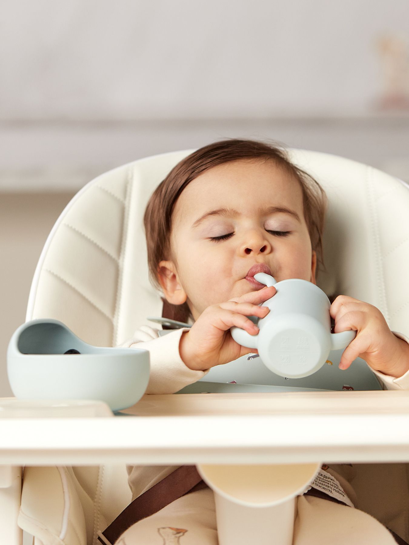 Силиконовый поильник-кружка с трубочкой и удобными ручками подойдёт малышам с 6 месяцев. Отличный вариант перехода от соски к кружке. Лёгкий, не бьётся, не впитывает неприятные запахи и приятен на ощупь. Мягкая силиконовая трубочка безопасна для нежных дёсен - даже самые маленькие дети могут безопасно пользоваться поильником. Крышка плотно закрывает содержимое, исключает вытекание жидкости. Кружку можно мыть в посудомоечной машине, разогревать в СВЧ и стерилизовать.