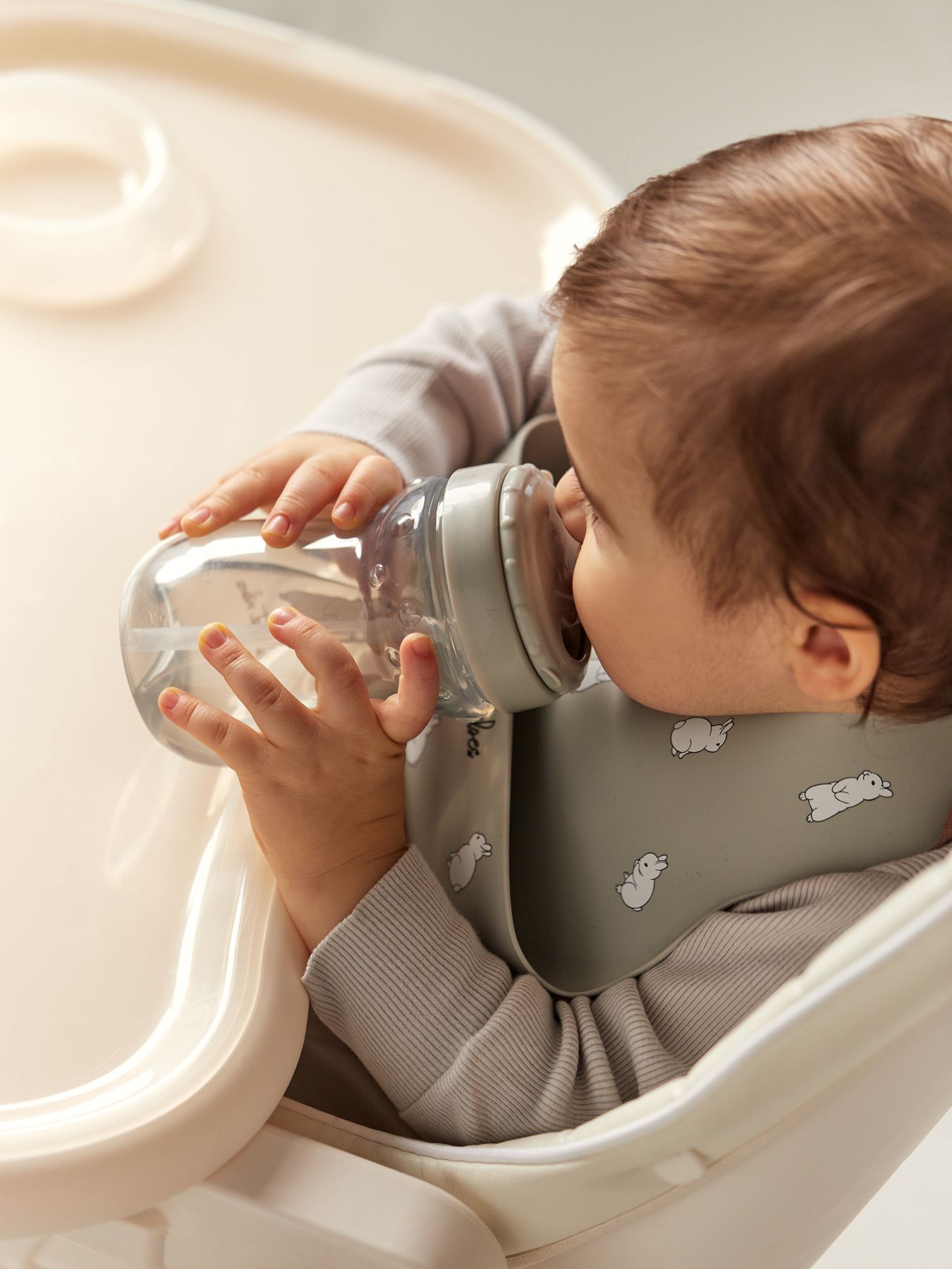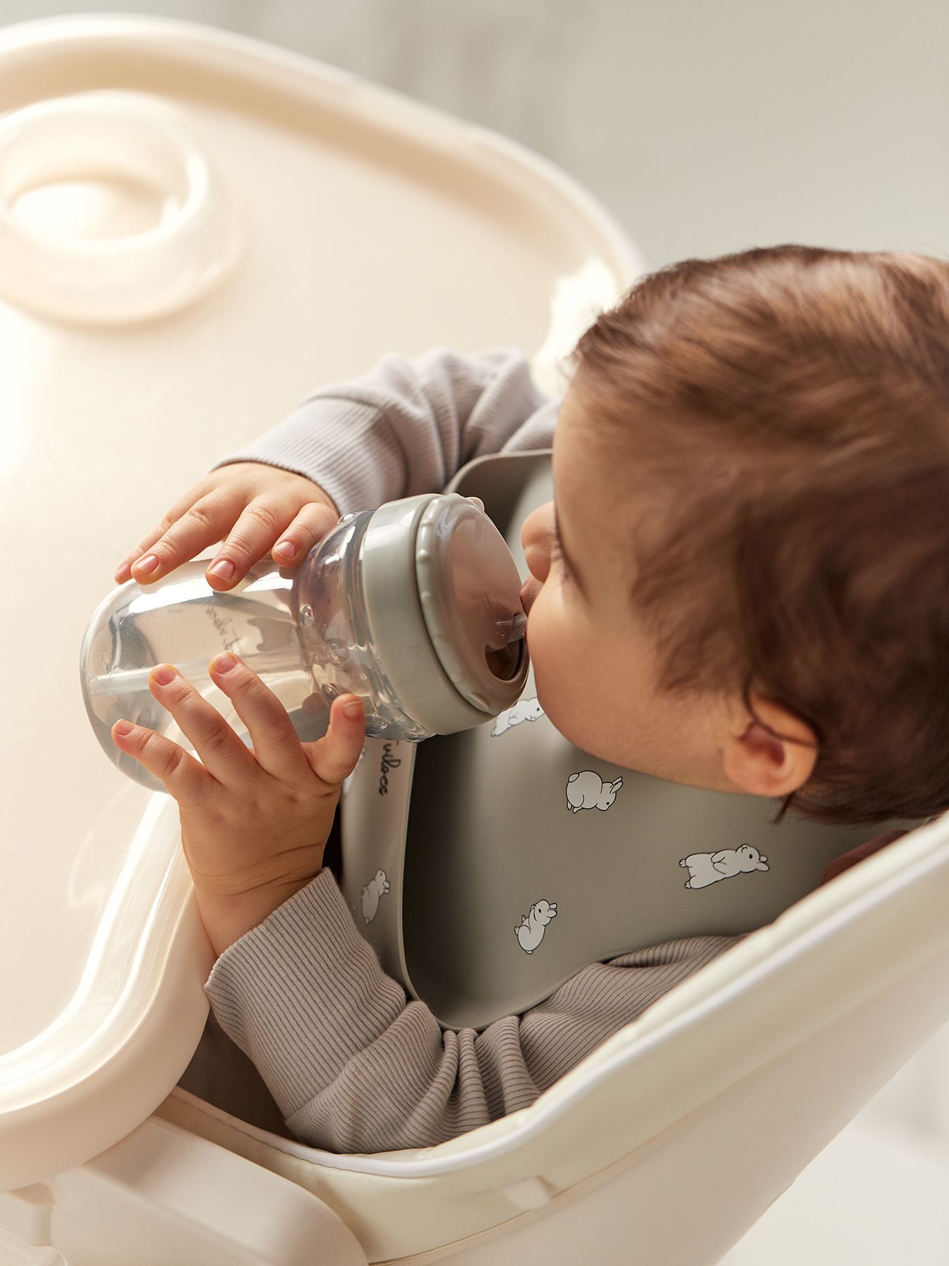Удобный поильник-непроливайка с силиконовой трубочкой подходит для малышей с 9 месяцев. Крышка поильника легким вращением убирает трубочку внутрь, предохраняя ее от загрязнений, а также надежно защищая содержимое бутылочки от протекания. Поильник имеет большой объём, чтобы напитка хватало малышу надолго.