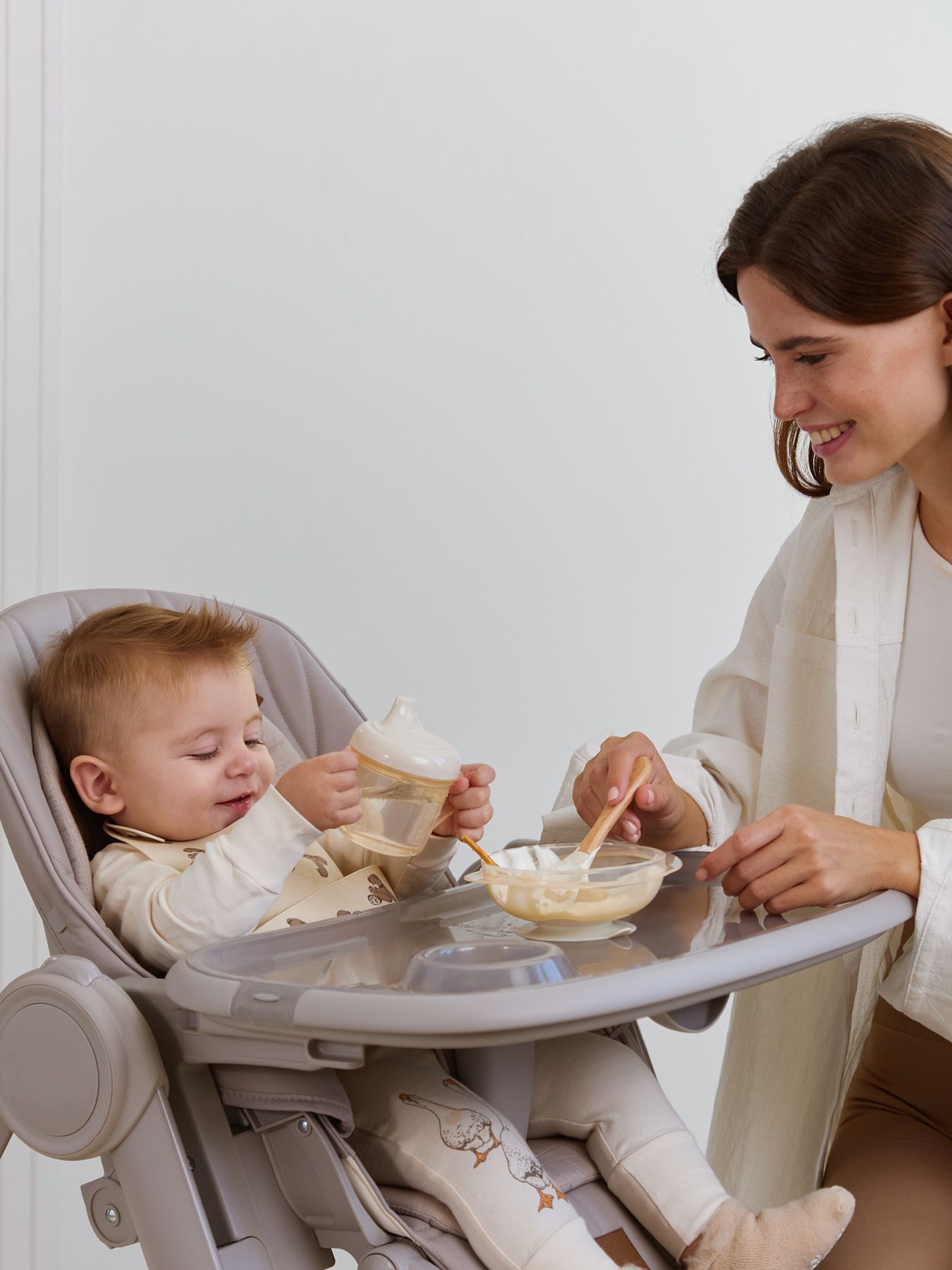 Поильник с ручками тренирует навыки самостоятельного питья. Крышка фиксируется при помощи резьбы, что предотвращает случайное проливание. Поильник поможет ребёнку перейти от грудного вскармливания или бутылочки к обычной кружке. DRINK UP отлично подойдёт малышу, когда у него уже достаточно развита моторика, чтобы держать чашку. Поильник учит малыша координировать движения рук и подносить кружку ко рту.