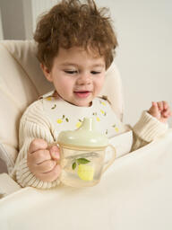 Поильник с ручками тренирует навыки самостоятельного питья. Крышка фиксируется при помощи резьбы, что предотвращает случайное проливание. Поильник поможет ребёнку перейти от грудного вскармливания или бутылочки к обычной кружке. DRINK UP отлично подойдёт малышу, когда у него уже достаточно развита моторика, чтобы держать чашку. Поильник учит малыша координировать движения рук и подносить кружку ко рту.