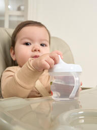 Поильник с ручками тренирует навыки самостоятельного питья. Крышка фиксируется при помощи резьбы, что предотвращает случайное проливание. Поильник поможет ребёнку перейти от грудного вскармливания или бутылочки к обычной кружке. DRINK UP отлично подойдёт малышу, когда у него уже достаточно развита моторика, чтобы держать чашку. Поильник учит малыша координировать движения рук и подносить кружку ко рту.