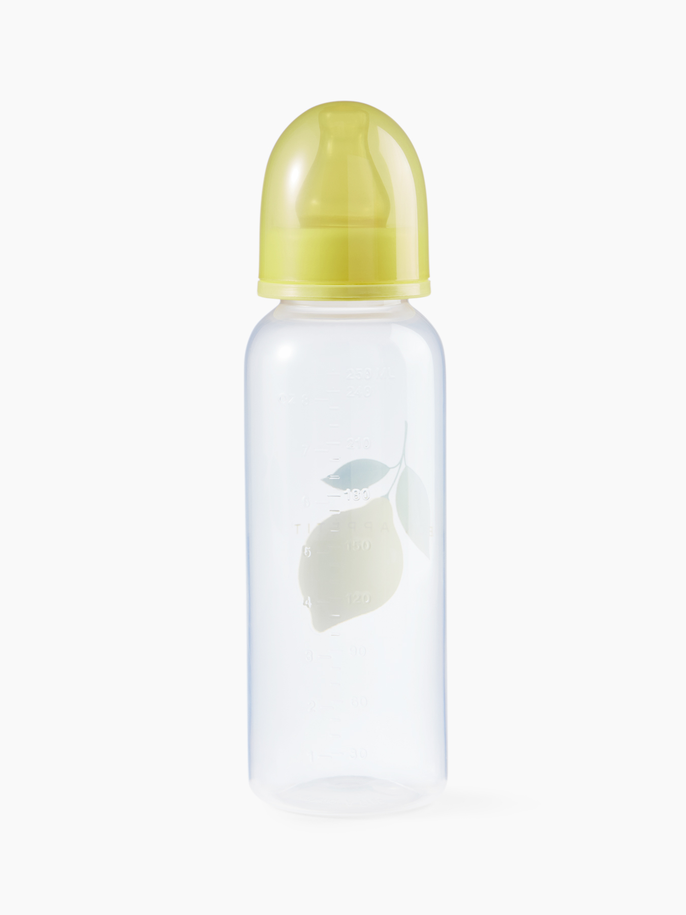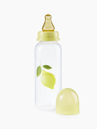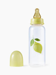 Бутылочка с медленным потоком имитирует процесс грудного вскармливания. Подходит детям с самого рождения. В нее можно налить смесь или воду, если малыш на смешенном или искусственном вскармливании. Латексная сменная соска в комплекте сидит плотно и крепко. После истечения срока службы ее легко заменить, размер стандартный для бутылочек с узким горлышком. Как и все изделия из экологичного натурального латекса, она теплая и мягкая на ощупь. Детская бутылка для новорожденных также изготовлена из безопасного материала, который не содержит Бисфенол-А. Тара прослужит вам долгие годы, а благодаря большому объему, 250 миллилитров, подойдет и для подросшего ребенка. Мерная шкала позволяет кормить малыша в соответствии с нормами. Бутылочку от 0 месяцев удобно брать с собой. Защитный колпачок сидит плотно, защищает вещи мам в сумке от жидкости, а соску от грязи. Уход простой. Бутылочку можно мыть в посудомойке, а соску кипятить и стерилизовать. Для стерилизации удобно брать многоразовые пакеты Happy Baby, которые справляются с очисткой за 3 минуты. Рекомендуется мыть соску и бутылочку после каждого использования, сушить при комнатной температуре. Изделие украшает милый рисунок, который развлечет ребенка во время обеда: можно рассматривать и впитывать хороший вкус с первых дней жизни. Дизайн сочетается с одеждой и товарами для ухода за ребенком из коллекции для новорожденных от Happy Baby.