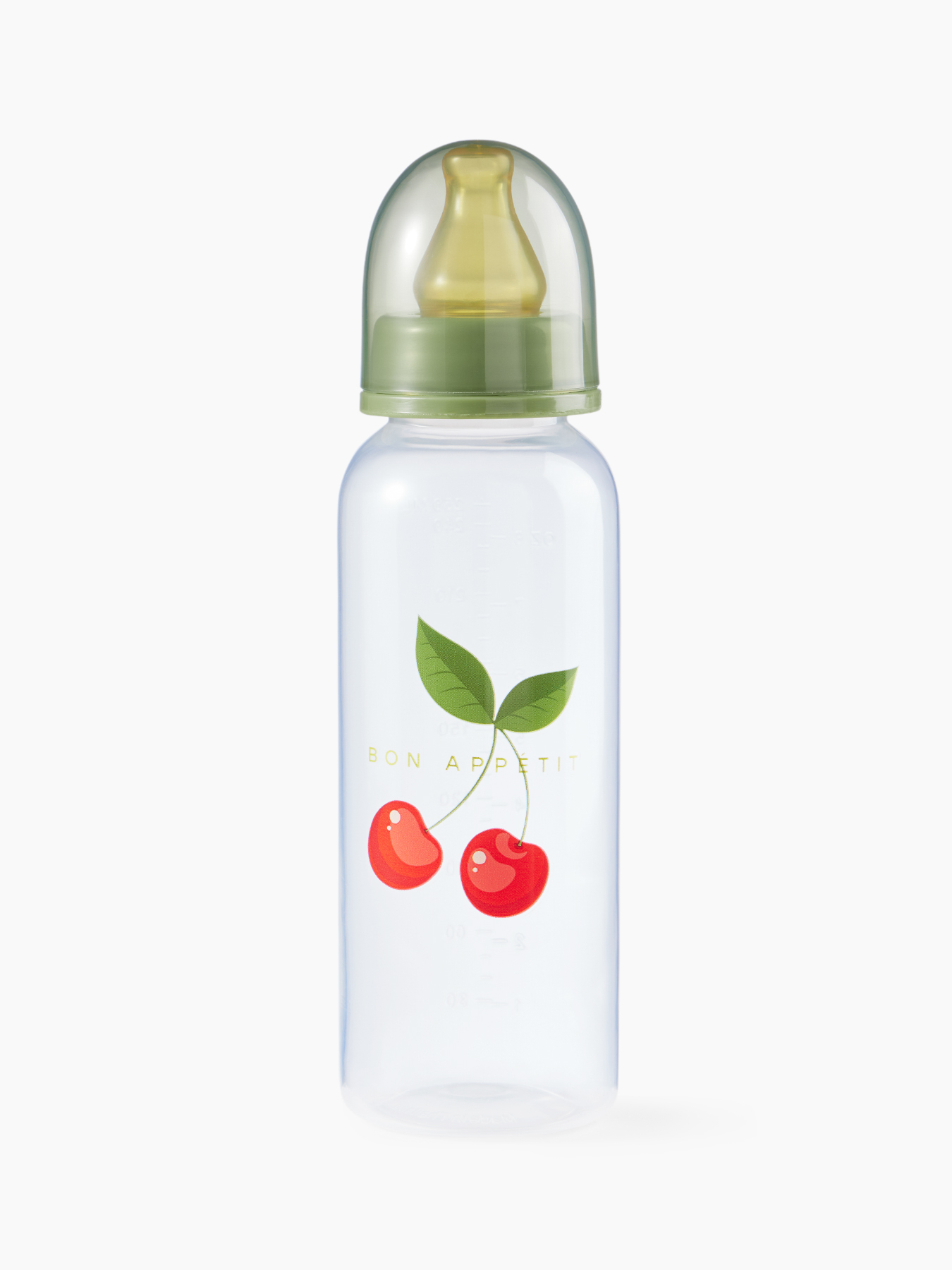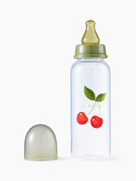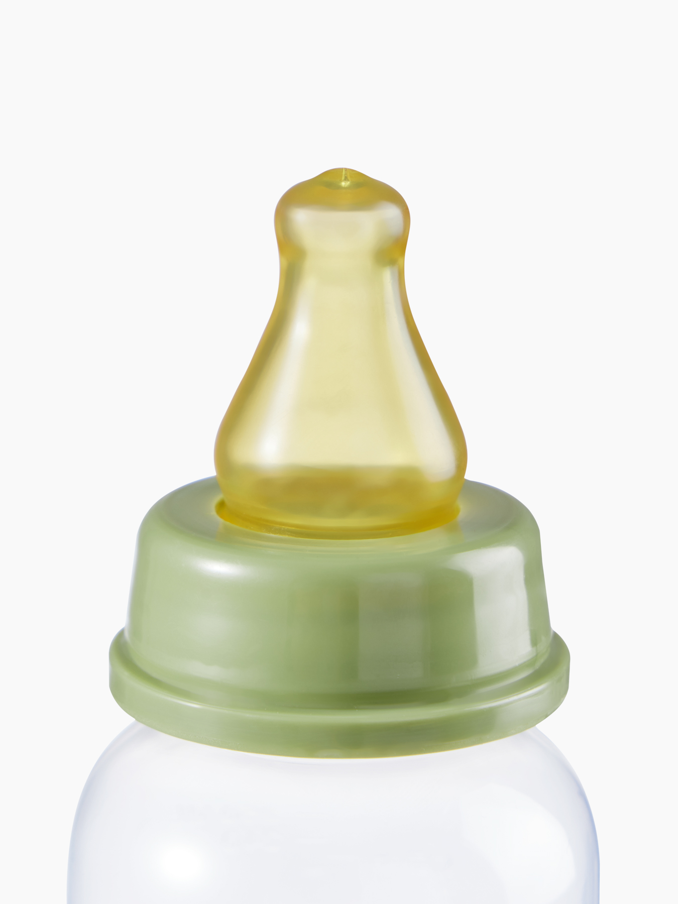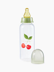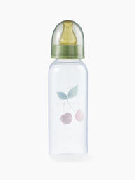 Бутылочка с медленным потоком имитирует процесс грудного вскармливания. Подходит детям с самого рождения. В нее можно налить смесь или воду, если малыш на смешенном или искусственном вскармливании. Латексная сменная соска в комплекте сидит плотно и крепко. После истечения срока службы ее легко заменить, размер стандартный для бутылочек с узким горлышком. Как и все изделия из экологичного натурального латекса, она теплая и мягкая на ощупь. Детская бутылка для новорожденных также изготовлена из безопасного материала, который не содержит Бисфенол-А. Тара прослужит вам долгие годы, а благодаря большому объему, 250 миллилитров, подойдет и для подросшего ребенка. Мерная шкала позволяет кормить малыша в соответствии с нормами. Бутылочку от 0 месяцев удобно брать с собой. Защитный колпачок сидит плотно, защищает вещи мам в сумке от жидкости, а соску от грязи. Уход простой. Бутылочку можно мыть в посудомойке, а соску кипятить и стерилизовать. Для стерилизации удобно брать многоразовые пакеты Happy Baby, которые справляются с очисткой за 3 минуты. Рекомендуется мыть соску и бутылочку после каждого использования, сушить при комнатной температуре. Изделие украшает милый рисунок, который развлечет ребенка во время обеда: можно рассматривать и впитывать хороший вкус с первых дней жизни. Дизайн сочетается с одеждой и товарами для ухода за ребенком из коллекции для новорожденных от Happy Baby.
